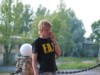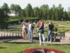 Trotz des sehr informativen Gespräches brennen wir darauf nach Oranienbaum zu kommen. Ruslan lässt uns allerdings nicht gehen, ohne uns vorher noch ein Geschenk gemacht zu haben. Alle Teilnehmer bekommen von ihm ein 13x18 cm gerahmtes Bild mit einem der hiesigen Bauwerke darauf abgebildet. Als weitere Überraschung entfaltet er eine Flagge von Peterhof, die er mir für unseren Verband schenkt. Da steigen mir tatsächlich, hoffentlich von den anderen unbemerkt, die Tränen in die Augen. Noch bevor wir das Gelände verlassen, kommt uns der General mit seinem Passat Kombi und dem Pétanque Aufkleber entgegen. Schnell noch einige Gruppenfotos mit General.