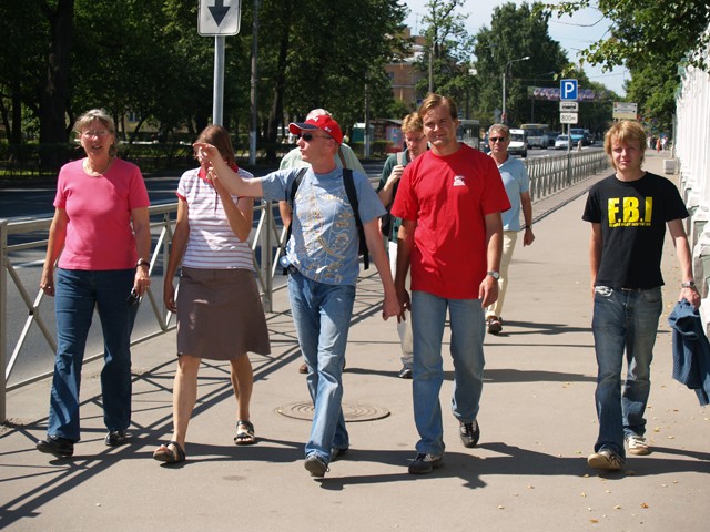 Am Schlosstor treffen wir uns alle und laufen nun gemeinsam, ja wohin eigentlich? Und warum laufen wir? Ich denke wir fahren nach Oranienbaum. Es ist gleich 14.00 h. Ich habe Hunger. Also frage ich Piotr wo es hin geht.