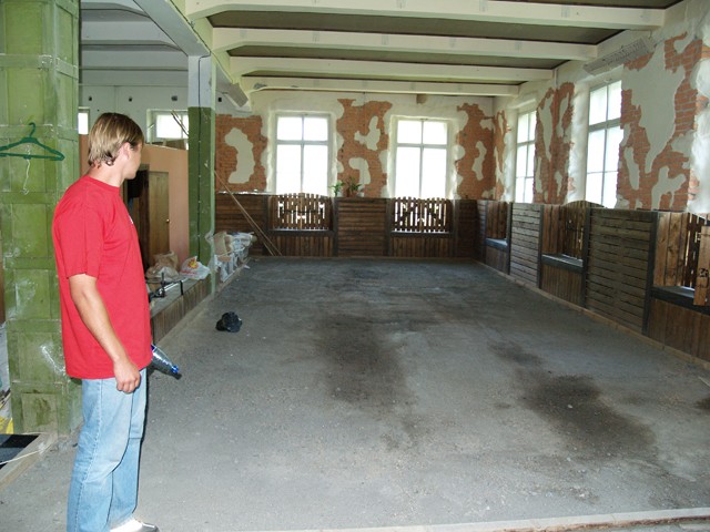 Auf der anderen Seite des Raumes befindet sich der Ausgang zum Hof. Die Gebäude ringsum sehen alt und unbenutzt aus. Rechts von uns befindet sich ein Teich mit einem kleinen Wehr. Wir überqueren eine kleine Brücke und laufen ca. 400 m einen Abhang hinab. Hinter den hohen wildwachsenden Bäumen verbergen sich weitere Gebäude. Am Fuße des Hügels angelangt betreten wir über eine steinerne Treppe eines der Gebäude, die vermutlich tatsächlich alte Fabrikhallen gewesen sind. Es ist dunkel in diesem Gang. Grau in grau. Die Tür links scheint verbarrikadiert. Warum? Lesen können wir hier nichts. Doch a la wir weiterlaufen, sehen wir an den Wänden Wandmalereien. So müssen sich die Entdecker der alten Höhlen in Südfrankreich gefühlt haben. Sieh mal, der hat Boulekugeln in der Hand! Unser weiterer Weg, mal links, mal rechts aber ständig nach oben ist mit zunehmend mehr Malereien verziert. Wir sind also da! In der Boulehalle. Oben! In der mindestens zweiten Etage.