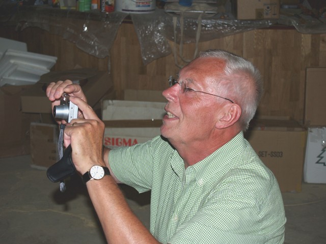 Trotz des sehr informativen Gespräches brennen wir darauf nach Oranienbaum zu kommen. Ruslan lässt uns allerdings nicht gehen, ohne uns vorher noch ein Geschenk gemacht zu haben. Alle Teilnehmer bekommen von ihm ein 13x18 cm gerahmtes Bild mit einem der hiesigen Bauwerke darauf abgebildet. Als weitere Überraschung entfaltet er eine Flagge von Peterhof, die er mir für unseren Verband schenkt. Da steigen mir tatsächlich, hoffentlich von den anderen unbemerkt, die Tränen in die Augen. Noch bevor wir das Gelände verlassen, kommt uns der General mit seinem Passat Kombi und dem Pétanque Aufkleber entgegen. Schnell noch einige Gruppenfotos mit General.