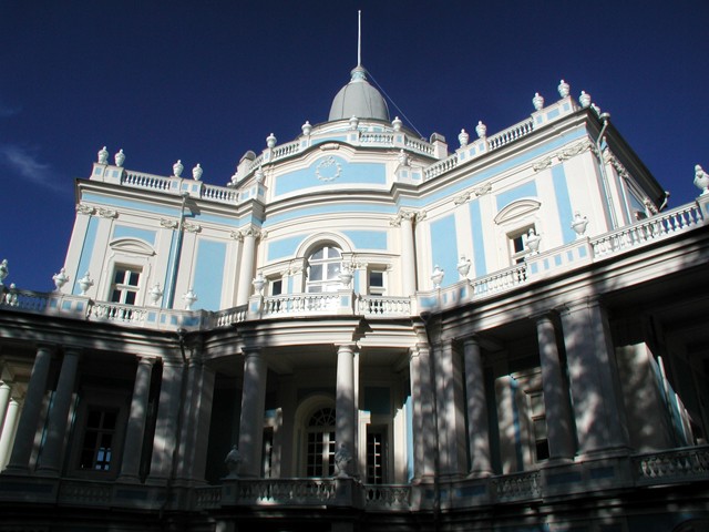 Peter hat sich als Guide für heute angemeldet, Rudik will ihn begleiten. Die zwei möchten mit uns nach Oranienbaum, einer Stadt, die weitere 12 km nördlich von Peterhof liegt, begleiten. Oranienbaum hört sich verdammt deutsch an. Das rührt vermutlich daher, dass sein Gründer Michail Wassiljewitsch Lomonossow im 18. Jahrhundert in Marburg studierte und sich dort eine Marburgerin zur Frau nahm. Das dort zu der Zeit für Fürst Alexander Danilowitsch Menschikow errichtete Schloss, soll nach den in der Orangerie des Schlosses gezüchteten Orangenbäumen benannt worden sein. Heute heißt die Stadt jedoch Lomonossow, nach jenem Universalgelehrten, der zu seinen Lebzeiten dort eine Farbglasmanufaktur errichtete. Und die berühmteste Porzellanfabrik in St. Petersburg trägt heute noch seinen Namen.