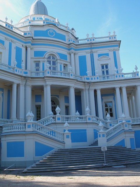 Die meisten Gebäude befinden sich jedoch unglücklicherweise eingerüstet im Zustand der Restaurierung. Einzig der Rutschbahnpalast ist zumindest von außen gänzlich wieder hergestellt. Hier hatten Zar und Zimmermann vermutlich auch wegen der günstigen Hanglage, zur Belustigung der Hofdamen eine Rutsche angebracht, die während der Wintermonate eifrig mit den Schlitten befahren wurde.