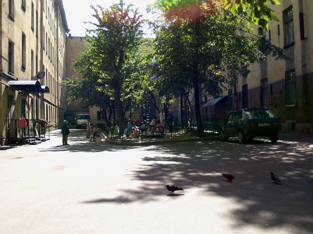 Vom Fotostudio ausgehend, laufen wir querfeldein durch kleine Strassen und Hinterhöfe St. Petersburgs und saugen die Eindrücke in uns auf. Immer wieder stoßen wir auf Besonderheiten. Auf diese Art und Weise nähern wir uns immer mehr dem eigentlichen Zentrum. Unsere Neugierde treibt uns in eine „Hofeinfahrt“ die sich als Zugang zu einem öffentlichen Markt herausstellt. Hier sind die Häuser alle höchstens anderthalb geschossig. Jedes Haus beherbergt ein kleines Geschäft in dem vornehmlich Textilien aber auch alle anderen Notwendigkeiten des täglichen Lebens verhandelt werden. Unterbrochen werden die Häuserzeilen durch größere Plätze auf denen sich Marktstände wie an einer Perlenkette aufreihen. Die schmalen Wege dazwischen erlauben höchsten drei Personen nebeneinander zu laufen. In den Ständen von maximal 2 x 2 Metern Größe probieren Frauen sowohl Perücken als auch Kleidungsstücke bis hin zur Unterwäsche an. Es versteht sich von allein, dass es auf diesem engen Raum keine Umkleidekabinen gibt. Es scheint aber auch niemanden so richtig zu stören. Ich kaufe natürlich auch etwas. Dieses Mal ist es das Trikot von Zinedine Zidane, meinem französischen Lieblingsspieler. Es kostet nicht sehr viel. Nun muss ich ein paar Kilo abnehmen damit ich es auch einmal tragen kann. Bianca nöhlt wie immer wenn ich gemütlich einkaufen möchte ein wenig rum: „Wofür brauchst du das?“ und zerrt mich langsam aber zielstrebig aus der Gefahrenzone heraus.