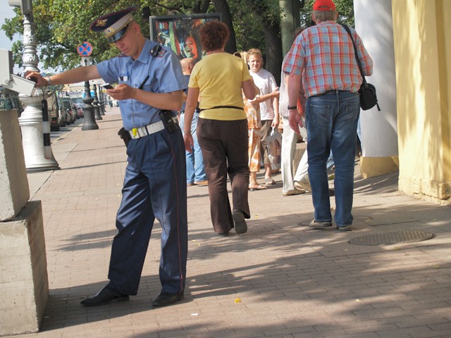 Vom Fotostudio ausgehend, laufen wir querfeldein durch kleine Strassen und Hinterhöfe St. Petersburgs und saugen die Eindrücke in uns auf. Immer wieder stoßen wir auf Besonderheiten. Auf diese Art und Weise nähern wir uns immer mehr dem eigentlichen Zentrum. Unsere Neugierde treibt uns in eine „Hofeinfahrt“ die sich als Zugang zu einem öffentlichen Markt herausstellt. Hier sind die Häuser alle höchstens anderthalb geschossig. Jedes Haus beherbergt ein kleines Geschäft in dem vornehmlich Textilien aber auch alle anderen Notwendigkeiten des täglichen Lebens verhandelt werden. Unterbrochen werden die Häuserzeilen durch größere Plätze auf denen sich Marktstände wie an einer Perlenkette aufreihen. Die schmalen Wege dazwischen erlauben höchsten drei Personen nebeneinander zu laufen. In den Ständen von maximal 2 x 2 Metern Größe probieren Frauen sowohl Perücken als auch Kleidungsstücke bis hin zur Unterwäsche an. Es versteht sich von allein, dass es auf diesem engen Raum keine Umkleidekabinen gibt. Es scheint aber auch niemanden so richtig zu stören. Ich kaufe natürlich auch etwas. Dieses Mal ist es das Trikot von Zinedine Zidane, meinem französischen Lieblingsspieler. Es kostet nicht sehr viel. Nun muss ich ein paar Kilo abnehmen damit ich es auch einmal tragen kann. Bianca nöhlt wie immer wenn ich gemütlich einkaufen möchte ein wenig rum: „Wofür brauchst du das?“ und zerrt mich langsam aber zielstrebig aus der Gefahrenzone heraus.