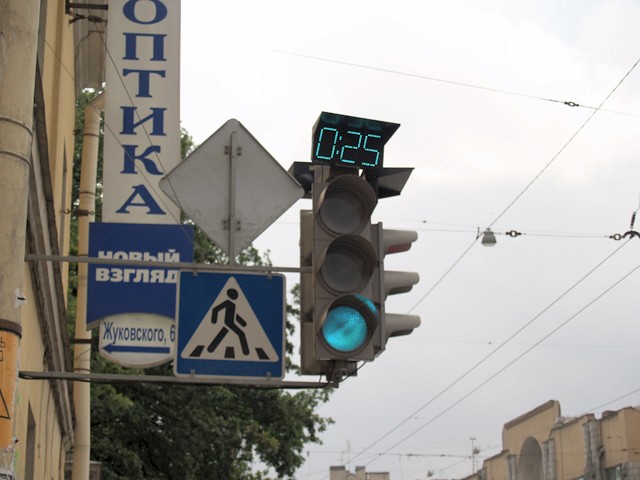 An der Kirche St. Petri laufen wir nun über den Nevsky in Richtung Bolshaja Newa. Hunger beschleicht uns. Laufen macht hungrig. Wir suchen nach einem Schnellrestaurant. Erstens wollen wir nicht viel essen und zweitens nicht so viel Zeit verbummeln. Wir finden tatsächlich einen „russischen MacDonalds“. Hier gibt es in sehr großer Auswahl alles was die russische Küche so bietet. Wir stehen ratlos vor einer langen Theke in der bereits vorbereitete Salate und Desserts aufgereiht stehen. Alles sieht verführerisch aus. In vielen Fällen können wir nur ahnen was es ist. Hinter der Theke hängt eine riesige bebilderte Tafel, die die gesamte Speisekarte darstellt. Allerdings alles in kyrillischen Buchstaben. „Wir können ja nach Bildern bestellen“, sage ich zu meiner Hulda. Das sind vermutlich Reizworte für eine der fixen Damen hinter der Theke. Sie winkt jemandem zu und plötzlich sagt eine junge freundliche weibliche Stimme neben mir: „Kann ich Ihnen helfen?“ Ich bemühe mich meinen Mund wieder zu schließen und sage immer noch überrascht: „Ja! Wir möchten gerne etwas essen!“ Von nun an, geht alles wie von selbst. Wir setzen uns mit unserem Tablett, den Getränken und dem Salat und auch der Nummerntafel an einen der modernen Tische und schauen auf dem großen Plasma Fernseher MTV auf russisch. Es dauert nicht lange, dann bringt uns unsere freundliche Bedienung unsere Essen.