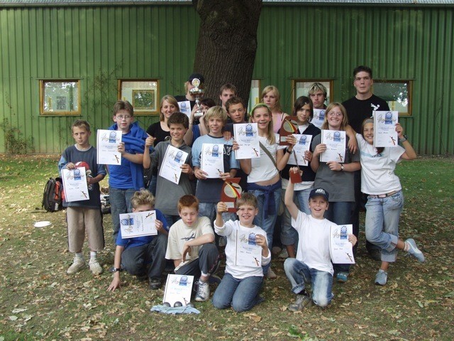 UG: Gruppenfoto mit Pokalen und Urkunden