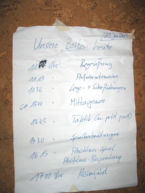 ![]() Der Tagesablauf; pünktlich um 17.00 Uhr war Schluss | |