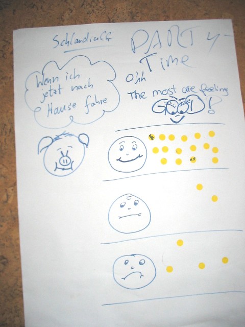 ![]() Das Stimmungsbarometer am Ende der Sichtung. Wieder mehr Punkte als Teilnehmer... | |