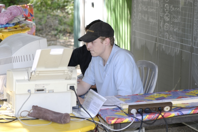 Christian gibt die Ergebnisse ein