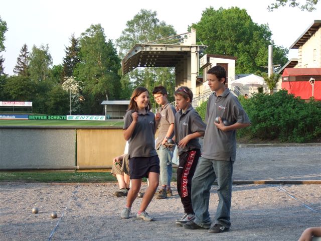 DB: Süchtig sind sie: Direkt nach der Ankunft am Freitagabend ging es zum Boulodrome nach Schüttorf. Unter Flutlicht wurde noch bis 23.00 Uhr gespielt