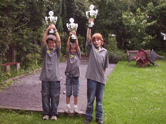 in Maastricht teilzunehmen. Diese Turnierserie wird (wie bei den Profis) in acht verschiedenen französischen Städten ausgetragen. Maastricht war zum ersten Mal als ausländischer Austragungsort ausgewählt worden. Die jeweiligen Sieger werden zum Finale in Südfrankreich eingeladen. Unser Team mit Hanh (9), Christian (13) aus Aachen und Justus (13) aus Bonn, dass bei den NRW-Jugendmeisterschaften vom Landesverband mit neuen NRW-Shirts ausgestattet worden ist, schaute etwas ungläubig und mit großen Augen als sie erfuhren, dass sie auf dem Carré d’Honneur auf dem Vrijthof im Zentrum von Maastricht antreten sollten. Wir wurden als ’Deutsches Team’ sehr freundlich begrüßt, konnten aber auch unsere regionale Zugehörigkeit in einigen Gesprächen mit den Offiziellen und Betreuern der Teams klären. Und dass vorab: Unsere Jugendlichen erfuhren für ihr Auftreten, den freundlichen Umgang mit den Gegnern und ihr konzentriertes Spiel von allen Seiten großes Lob. Unter den Augen der Trainer und Coaches wurde ihnen eine boulelistische Perspektive attestiert. Bei der Einschreibung merkte man schon den Stellenwert dieser Veranstaltung. Ausgestattet mit Backstage-Bändchen, VIP-Status, etc. bescherte uns die Auslosung im B-Poule die vermeidlich stärksten Gegner. Unsere Spieler haben davon natürlich nichts erfahren und konnten somit unbeschwert aufspielen. Das Turnier wurde um Punkt 14 Uhr bei herrlichstem Sommerwetter angepfiffen. In der Poule-Runde wurde jeder-gegen-jeden bei einem Zeitlimit von 40 min gespielt. Anschließend jeweils ein Finalspiel der Gruppengleichplazierten. 1. SpielNRW – Team Jeu de Bommel/Amicale Cuijk (9-10)(0-2, 0-4, 1-4, 1-10, 2-10, 3-10, 4-10, 9-10) Sichtlicht nervös und zumindest Hanh noch etwas verloren auf dem großen Spielfeld wurden die ersten Aufnahmen angegangen. Der erste Punkt in der dritten Aufnahme wurde dann entsprechend von den mitgereisten Fans lautstark von der Tribüne bejubelt. Der Anfang schien gemacht. Jedoch zwei Löcher von Christian und ein sauberes Entfernen der eigenen besten Kugel durch Justus brachten ein deprimierendes Six-Pack zum 1 zu 10. - Teambesprechung. – Die zuvor etwas zu defensive Spielweise wurde in eine offensivere gewandelt. und prompt folgten die Punkte 2,3, und 4 in den nächsten drei Aufnahmen. Dann folgte die beste und im Nachhinein etwas unglückliche Aufnahme unsers Teams: Hanh legt auf 8 Meter eine zwingend zu schießende Kugel. Zwei Löcher und der Gegner bringt nur eine störende Kugel ohne Punkt 50 cm vor die Sau. Diese wird nach kurzer Besprechung durch Christian mit Punkt entfernt. Eine von den nachzulegenden Kugeln bleibt leider hängen. - 5 Punkte , 9 zu 10. Dann beendete das Zeitlimit die grandiose Aufholjagd: Sekunden vor dem Sauwurf zur 9ten Aufnahme wurde abgepfiffen. Fazit: Unser Team hatte sich nach anfänglichem nervösen Beginn auf dem gewöhnungsbedürftigen Terrain (Kies auf Asphalt) gefunden, stark das Mittelspiel gestaltet und am Ende etwas unglücklich gegen den späteren Turniersieger verloren. Das lies hoffen. 2. SpielNRW – Nationale Selectiv des niederländischen Verbandes (NJBB) (12-11)(0-2, 5-2, 6-2, 6-6, 6-11, 10-11, 12-11) Die gerade aus Barcelona zurück gekommenen Kaderspieler des niederländischen Verbandes, die ihre erste Begegnung mit 12 zu 0 gewonnen hatten, begannen stark. Uns (mir und den Mitgereisten) schwante Böses. Sollte diese Partie schon das vorzeitige Aus auf einen Podiumsplatz bedeuten? Unser Team belehrte uns eines Besseren: Schon in der zweiten Aufnahme nutzten sie die Chance, nach zwei Löchern der schussfreudigen Niederländer, mit zwei super nachgelegten Kugeln von Hanh und guter Vorarbeit durch Justus, auf 5 Punkte! Nach unserem 6ten Punkt folgten zwei starke Aufnahmen der Gegner, die mit dem einem und anderen Carreau auf 6-11 davonzogen. Es folgte eine kurze Absprache zwischen den Dreien: Hanh geht wieder in die Legerposition. Abermals zeigten die Jugendlichen starkes Spiel unter Stress. 4 Punkte (10-11) ist der Lohn. Jetzt musste die Sau schnell geworfen werden, denn es drohte wieder das Zeitlimit. Hanh legt nachfolgend zwingend. Die Niederländer lochen und versuchen nach dem Abpfiff eine Mauer aufzubauen. 11-11 und noch fünf Kugeln auf der Hand. Was tun? Kurze Besprechung. Hanh sieht die Lücke und zirkelt den Siegpunkt an die Sau. Die Jungs müssen nicht mehr eingreifen. Großer Jubel bei uns und etwas verdutztes Staunen bei den Auswahlspielern Hollands beendeten diese Partie. Fazit: Ein immer besser harmonisierendes Team erlaubte sich immer mal wieder ein Päckchen, konnte aber kontern und zeigte im Endspiel starke Nerven. Klasse! 3. SpielNRW – Equipe 4 (8-5)(0-1, 0-4, 1-4, 4-4, 5-4, 5-5, 8-5) Durch die Ergebnisse der anderen Begegnungen war vor diesem Spiel noch nichts entschieden. Selbst bei einem knappen Sieg konnte es ’nur’ für Platz 3 reichen. Etwas verunsichert ob der Konstellation lag das gegnerische Team schnell mit 0 zu 4 vorne. Nach kurzer Aufmunterung kämpfte unser Team sich heran. Zweimal musste Justus den vermeidlich vorentscheidenden 5ten Punkt der Gegner entfernen. Jetzt musste einwenig Glück herhalten – der Schiri misst – Punkt bei NRW. – Aufatmen -. In den nächsten zwei Aufnahmen drehen die NRW-Jugendlichen das Spiel. Dann wurde es wieder aufgrund der ablaufenden Zeit wieder spannend. 5-5 liegt und noch 3 Kugeln beim Gegner. Also kurze Info an die Spieler: Schnell die neue Aufnahme beginnen, wenn der 6te Punkt oder mehr kassiert wird.. Es bleibt bei Einem. Abpfiff. In der letzten Aufnahme legt Hanh wieder eine Zauberkugel, die nicht entfernt werden kann. Aber die restlichen Kugeln müssen noch Punkte bringen, oder? Kurze Verwirrung. Unser Team sieht die Gefahr, bringt aber noch 2 Kugeln. 8-5. Damit war dann das Spiel um den dritten Platz gesichert. Fazit: In diesem Spiel war ein Team gewachsen: verlegte oder verschossene Kugeln wurden von dem Team korrigiert. Uns Betreuern hat es ein paar Graue Haare gekostet. 4. Spiel (
