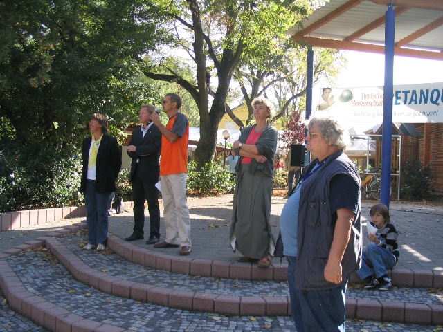 Wenn Engel reisen, oder wenn Deutschlands Boule-Damen reisen….so war sprichwörtlich nicht nur das schönste Wetter, sondern auch sondern auch eine gute und heitere Stimmung auf den DM-Gelände am Freibad H2O der Stadt Öhringen. Bürgermeister Jochen K. Kübler, DPV Vizepräsidentin Johanna Brauch und die Präsidentin des Hessischen Landesverbandes und Frauenbeauftragte des DPB Martina Becker eröffneten die 5. Deutsche Meisterschaft der Frauen und begrüßten unter den Spielerinnen u.a. auch die Teilnehmerinnen der Europameisterschaft Frauen in Ankara, Indra Waldbüßer und Anna Lazaridis (Bronzemedaille Tir de Précission).
