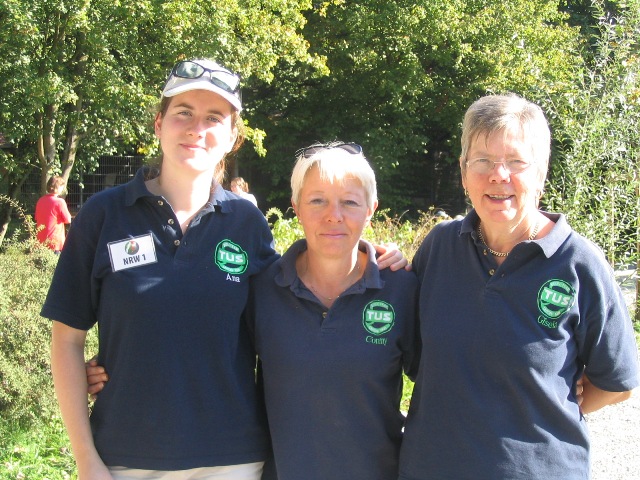 Und so starteten die Damen bei sommerlichen Temperaturen die 1. Runde. Die 10 Teams unseres Landesverbandes begannen hochkonzentriert ihre Partien und NRW 1, die Landesmeisterinnen (Ana Casado, Gisela Luck, Cornelia Timmermann), NRW 2 Laura Schardt, Anna Lazaridis, Martina Hösl), NRW 5 (Anke Ahrens, Anna Daams, Nele Stracke), und NRW 6 (Brigitte Baumert, Elke Schottek, Petra Giersche) konnten gleich einen Sieg für sich verbuchen. NRW 1, NRW 2 und NRW 5 waren bereits mit einem 2. Sieg im 2. Poule für das 1/16 Finale glatt qualifiziert.
