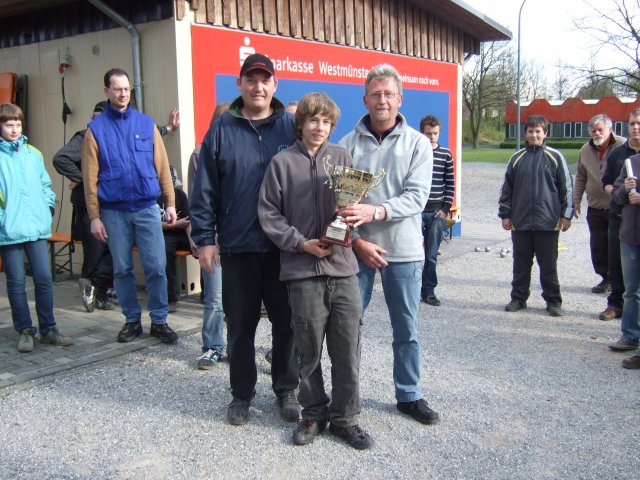 Das Endspiel zwischen beiden Doublettes (Zweierteams) wurde eine klare Sache für das Team Runo / Hengemühle. Das 13:1 gibt sicher nicht ganz die tatsächlichen Kräfteverhältnisse wieder. Auf dem dritten Platz landete das rein Coesfelder Paar Annika Vormann mit ihrem Papa Markus Vormann. Beide Lokalmatadore mussten sich den späteren Turniersiegern nur mit dem knappsten aller Ergebnisse von 12:13 geschlagen geben.