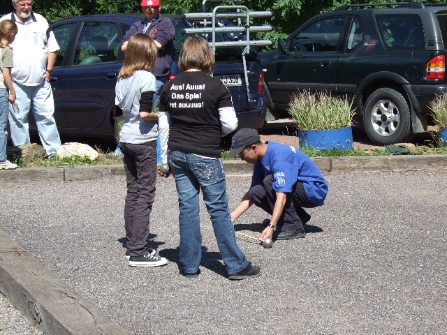 Die freiwilligen Helfer und Organisatoren der Boulegemeinschaft Kettwig, von denen ich beispielhaft Jorgo Dimitriadis und Friedhelm Sehnbruch nennen möchte, hatten sich jedenfalls vorgenommen, dieser Veranstaltung einen würdigen und passenden Rahmen zu geben. Das ist ihnen auch in ganz besonderem Maße gelungen. Die Spiele fanden in einer sehr angenehmen Atmosphäre statt, wurden von einer perfekten Bewirtung begleitet und Wasili Dimitriadis hatte es sich nicht nehmen lassen allen Kids eine Bratwurst und reichlich Melone zu spendieren. Solch ein Einsatz wie in Kettwig ist nicht selbstverständlich. Ist doch eine Jugendveranstaltung mit vergleichsweise geringer Teilnehmerzahl finanziell nicht annähernd so interessant wie ein übliches Turnier.