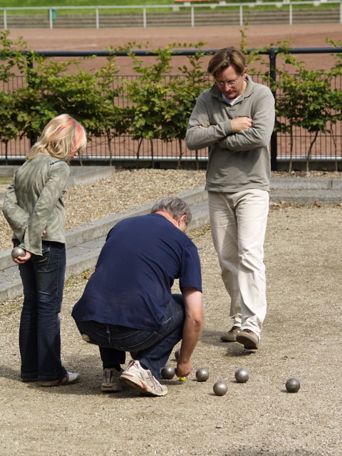 Am 25.08.08 fand die vorletzte Runde der Generationenturniere 2008 auf dem Spielgelände von Düsseldorf sur place an der Pariser Strasse statt. 19 Teams spielten und kämpften bei sehr schönem Wetter um Ranglistenpunkte und Wichtelgeschenke. Am erfolgreichsten war diesmal Annika Vormann (BC Coesfeld), die mit Markus Vormann alle fünf Runden siegreich gestalten konnte. Auf den Plätzen dahinter gab es drei Teams mit jeweils vier Siegen: Moritz Leibelt (mit Marc May) vor Julia Reimers (mit Daniel Schmitz), beide TuS Lintorf, und Christian Schneider (Boule d'Aix Aachen) mit Ludger Roloff.