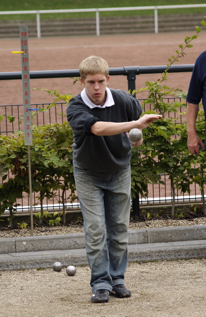 Am 25.08.08 fand die vorletzte Runde der Generationenturniere 2008 auf dem Spielgelände von Düsseldorf sur place an der Pariser Strasse statt. 19 Teams spielten und kämpften bei sehr schönem Wetter um Ranglistenpunkte und Wichtelgeschenke. Am erfolgreichsten war diesmal Annika Vormann (BC Coesfeld), die mit Markus Vormann alle fünf Runden siegreich gestalten konnte. Auf den Plätzen dahinter gab es drei Teams mit jeweils vier Siegen: Moritz Leibelt (mit Marc May) vor Julia Reimers (mit Daniel Schmitz), beide TuS Lintorf, und Christian Schneider (Boule d'Aix Aachen) mit Ludger Roloff.