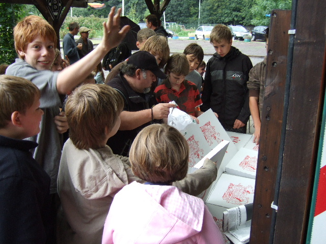 Friedhelm und Jorgo, Andreas und Michael waren unermüdlich damit beschäftigt, alle Kinder und Jugendlichen und die begleitenden Erwachsenen fürstlichst zu bewirten. Riesige Hamburger, leckere Pizza und köstliche Lasagne frisch vom Italiener, ein üppiges Frühstück, Kaffee, Kakao und Kuchen, Obst und Eis ließen keine Wünsche mehr offen.