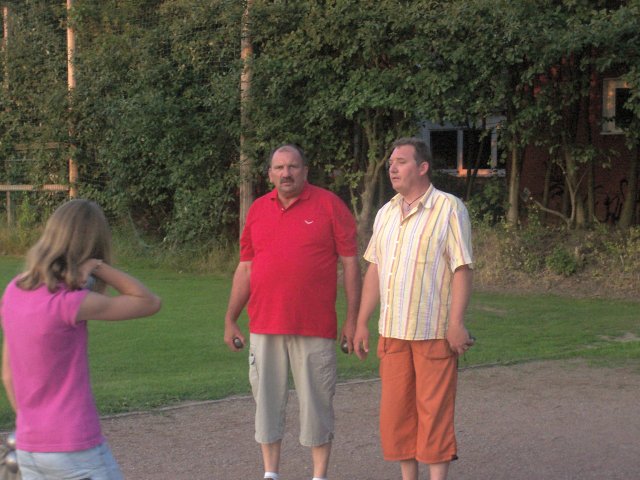 Dann ging es los. Fünfeinhalb Stunden sind wir mit einem Bus und einem PKW bis nach Büsum gefahren. Nach der anstrengenden Fahrt haben wir erst einmal die Zelte aufgeschlagen. Als alle Zelte standen, sind wir zu den Büsumer Krabbenboulern gefahren. Klaus, der Chef der Krabbenbouler, hatte uns zum Grillen und Spielen eingeladen. Es war mit allen ein Heidenspaß und den inoffiziellen Vergleichskampf konnten wir mit 3:2 für uns entscheiden. Am nächsten Tag sind wir nach dem Frühstück ans Meer nach Sankt Peter Ording gefahren. Als wir am Meer waren, packten einige zuerst ihre Kugeln aus und spielten eine Runde am Strand. Andere gingen zuerst ins Wasser. Es war ein herrlicher Tag mit tollem Wetter. Am späten Nachmittag sind wir dann wieder zum Zeltplatz gefahren, wo es ebenfalls eine Boulebahn gab. Leider war diese schon besetzt von einigen älteren Herrschaften, die eine etwas andere Art des Boules, als wir es kannten, spielten. Sie gingen in einen Kreis der einen Durchmesser von über einem Meter hatte und spielten dann sozusagen ein „Six-Tete“, jeder gegen jeden. Dabei spielte jeder seine drei Kugeln direkt nacheinander. Es war witzig, ihnen zuzuschauen. Am Abend gab es dann noch eine Trainingseinheit auf dem Platz der Krabbenbouler. Freitag Früh ging es nach dem Frühstück noch mal ans Wasser zum Tretboot fahren und dann hieß es schon wieder: Abfahrt nach Hause. Im „Partybus“ gab es dann trotz Stau noch mal richtig Spaß.