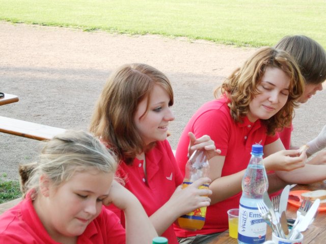 Die Jugendfahrt nach Büsum an die Nordsee war eine schöne Sache. Eigentlich sollte es ja erst am Mittwoch losgehen, aber nach dem Angebot der Familie Vormann, die erste Etappe der Fahrt in Coesfeld enden zu lassen, um erstens ein Turnier zu spielen und zweitens früh aufbrechen zu können, landeten sieben Jugendliche (Jan, Justus, Jonas, Moritz, Helen, Niklas, Julia) schon am Dienstag Abend in Coesfeld und marschierten aus dem weißen „Partybus“ direkt aufs Spielfeld wo Marie und Annika schon auf uns warteten. Wir wurden von allen Coesfeldern freundlich empfangen und hatten nach dem Spielen bis zur Dunkelheit bei Vormanns auch noch eine gute Herberge für die Nacht. Nachdem am nächsten Morgen Markus Vormann und Detlev Runo um 7 Uhr Brötchen geholt hatten, gab es Frühstück. Jonas weckte alle, die nicht so recht aufstehen wollten, mit einem Megafon. So hatten auch die Nachbarn noch etwas davon.