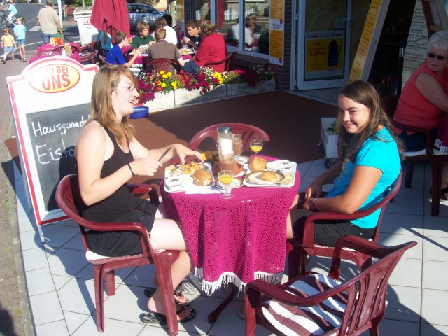 Die Jugendfahrt nach Büsum an die Nordsee war eine schöne Sache. Eigentlich sollte es ja erst am Mittwoch losgehen, aber nach dem Angebot der Familie Vormann, die erste Etappe der Fahrt in Coesfeld enden zu lassen, um erstens ein Turnier zu spielen und zweitens früh aufbrechen zu können, landeten sieben Jugendliche (Jan, Justus, Jonas, Moritz, Helen, Niklas, Julia) schon am Dienstag Abend in Coesfeld und marschierten aus dem weißen „Partybus“ direkt aufs Spielfeld wo Marie und Annika schon auf uns warteten. Wir wurden von allen Coesfeldern freundlich empfangen und hatten nach dem Spielen bis zur Dunkelheit bei Vormanns auch noch eine gute Herberge für die Nacht. Nachdem am nächsten Morgen Markus Vormann und Detlev Runo um 7 Uhr Brötchen geholt hatten, gab es Frühstück. Jonas weckte alle, die nicht so recht aufstehen wollten, mit einem Megafon. So hatten auch die Nachbarn noch etwas davon.