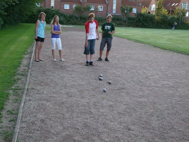 Dann ging es los. Fünfeinhalb Stunden sind wir mit einem Bus und einem PKW bis nach Büsum gefahren. Nach der anstrengenden Fahrt haben wir erst einmal die Zelte aufgeschlagen. Als alle Zelte standen, sind wir zu den Büsumer Krabbenboulern gefahren. Klaus, der Chef der Krabbenbouler, hatte uns zum Grillen und Spielen eingeladen. Es war mit allen ein Heidenspaß und den inoffiziellen Vergleichskampf konnten wir mit 3:2 für uns entscheiden. Am nächsten Tag sind wir nach dem Frühstück ans Meer nach Sankt Peter Ording gefahren. Als wir am Meer waren, packten einige zuerst ihre Kugeln aus und spielten eine Runde am Strand. Andere gingen zuerst ins Wasser. Es war ein herrlicher Tag mit tollem Wetter. Am späten Nachmittag sind wir dann wieder zum Zeltplatz gefahren, wo es ebenfalls eine Boulebahn gab. Leider war diese schon besetzt von einigen älteren Herrschaften, die eine etwas andere Art des Boules, als wir es kannten, spielten. Sie gingen in einen Kreis der einen Durchmesser von über einem Meter hatte und spielten dann sozusagen ein „Six-Tete“, jeder gegen jeden. Dabei spielte jeder seine drei Kugeln direkt nacheinander. Es war witzig, ihnen zuzuschauen. Am Abend gab es dann noch eine Trainingseinheit auf dem Platz der Krabbenbouler. Freitag Früh ging es nach dem Frühstück noch mal ans Wasser zum Tretboot fahren und dann hieß es schon wieder: Abfahrt nach Hause. Im „Partybus“ gab es dann trotz Stau noch mal richtig Spaß.