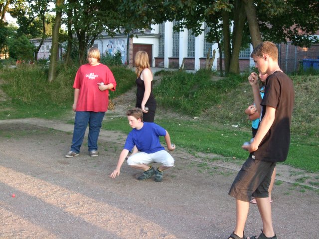 Dann ging es los. Fünfeinhalb Stunden sind wir mit einem Bus und einem PKW bis nach Büsum gefahren. Nach der anstrengenden Fahrt haben wir erst einmal die Zelte aufgeschlagen. Als alle Zelte standen, sind wir zu den Büsumer Krabbenboulern gefahren. Klaus, der Chef der Krabbenbouler, hatte uns zum Grillen und Spielen eingeladen. Es war mit allen ein Heidenspaß und den inoffiziellen Vergleichskampf konnten wir mit 3:2 für uns entscheiden. Am nächsten Tag sind wir nach dem Frühstück ans Meer nach Sankt Peter Ording gefahren. Als wir am Meer waren, packten einige zuerst ihre Kugeln aus und spielten eine Runde am Strand. Andere gingen zuerst ins Wasser. Es war ein herrlicher Tag mit tollem Wetter. Am späten Nachmittag sind wir dann wieder zum Zeltplatz gefahren, wo es ebenfalls eine Boulebahn gab. Leider war diese schon besetzt von einigen älteren Herrschaften, die eine etwas andere Art des Boules, als wir es kannten, spielten. Sie gingen in einen Kreis der einen Durchmesser von über einem Meter hatte und spielten dann sozusagen ein „Six-Tete“, jeder gegen jeden. Dabei spielte jeder seine drei Kugeln direkt nacheinander. Es war witzig, ihnen zuzuschauen. Am Abend gab es dann noch eine Trainingseinheit auf dem Platz der Krabbenbouler. Freitag Früh ging es nach dem Frühstück noch mal ans Wasser zum Tretboot fahren und dann hieß es schon wieder: Abfahrt nach Hause. Im „Partybus“ gab es dann trotz Stau noch mal richtig Spaß.