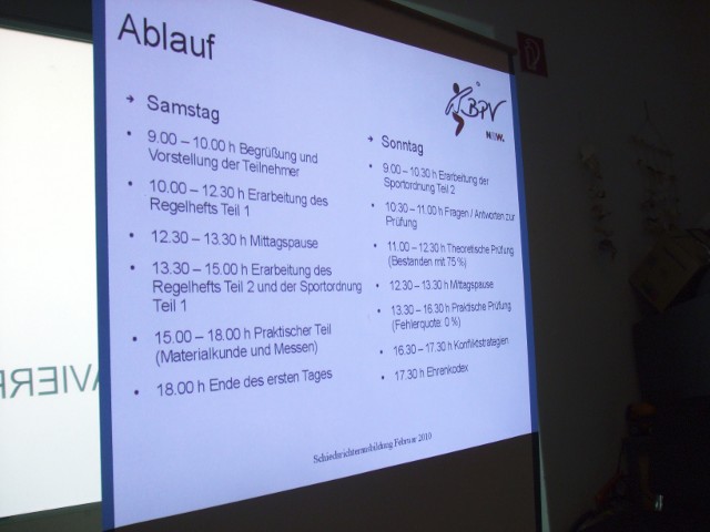 Am 6. Februar trafen sich 11 Kandidaten und der Schiedsrichterwart des BPV NRW zum 1. Tag der Schiedsrichterausbildung in Erkrath. Vorher hatten alle Kandidaten 2 Wochen, in denen sie sich in einem speziellen Forum austauschen und Fragen stellen konnten