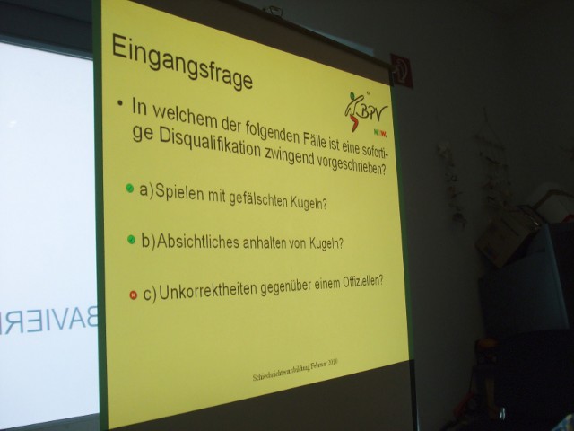 Am 6. Februar trafen sich 11 Kandidaten und der Schiedsrichterwart des BPV NRW zum 1. Tag der Schiedsrichterausbildung in Erkrath. Vorher hatten alle Kandidaten 2 Wochen, in denen sie sich in einem speziellen Forum austauschen und Fragen stellen konnten