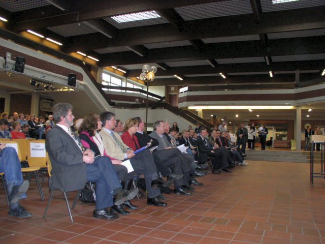Moderator und Aachener Nachrichten-Redakteur Holger Richter beim Smalltalk auf der Bühne: „Besonders erfolgreich war die Aachener Boule-Mannschaft, die den ersten Platz bei den Deutschen Meisterschaften belegte“.