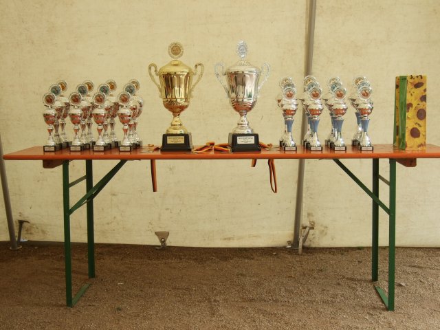 Die Ehrung aller Spielerinnen und Spieler und natürlich der erstplatzierten Teams beendeten das Turnier. Jetzt öffnete der Himmel seine Schleusen. Kaum war die Siegerehrung abgeschlossen und alle Fotos im Kasten, da prasselten aller Regen, der viel früher erwartet worden war, auf einmal herab.
