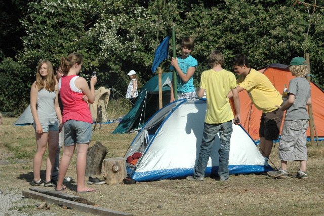 Die Jugendlichen und Eltern die nacheinander eintrafen, haben erstmal ihre Zelte