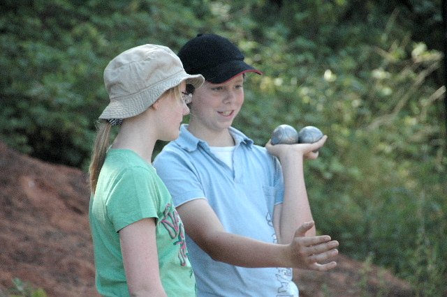 Die Jugendlichen und Eltern die nacheinander eintrafen, haben erstmal ihre Zelte aufgebaut, so entstand ein kleiner Campingplatz. Nach dem Errichten und Einrichten der Zelte wurden die Kugeln ausgepackt und es wurde gespielt, was denn auch sonst.