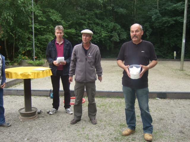 Siegerehrung – Detlev mit den Ergebnissen, Dirk mit lobenden Worten und Dieter mit den Schaummäusen
