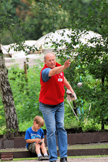 einem lockeren Turnier nichts im Wege stand. Es hatten sich immerhin sieben Kids mit ihren Spielpartnern eingefunden, darunter erfreulicherweise wieder vier Newcomer. Nach fünf Runden mit viel Spaß und Spiellaune konnte sich etwas überraschend, aber knapp und verdient, mit René von Reden aus Köln, ein Neuling den Tagessieg holen. Er schaffte vier Siege ebenso wie Helen Schuldhaus, konnte aber den direkten Vergleich für sich entscheiden. Die weiteren Platzierungen: 3. Lennart Gietmann 4. Denise Reimers 5. Julia Reimers 6. Benedikt Gietmann 7. Tani Gietmann Schon jetzt der Hinweis auf das letzte Generationenturnier in diesem Jahr am 2. Oktober in der Boulehalle in Goch. Bei der Abschlussveranstaltung hofft der Jugendausschuss möglichst viele der diesjährigen Teilnehmer begrüßen zu dürfen, um mit allen noch einmal einen tollen Bouletag zu verbringen. Martin Wleklik Jugendausschuss BPV NRW |