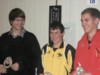 NRW Teams ein starkes Teilnehmerfeld. Gespielt wurden 5 Runden im Schweizer System. In der einen Gruppe traten 9 Juniors Teams und in der anderen Gruppe 8 Cadets Teams und 3 Minimes Teams gegeneinander an. In der Mittagspause wurde von den anwesenden Nachwuchsspielern des BPV ein neuer Jugendsprecher gewählt. Nach ihrer einjährigen Amtszeit wollte Julia Reimers nicht mehr weiter kandidieren. Christian Schneider ist nun der neue Jugendsprecher. Herzlichen Glückwunsch! Um 18:00 Uhr standen die neuen Meister fest. Auch wenn die Minimes in einer Gruppe gegen Cadets spielen mussten, wurde getrennt nach Altersklassen ausgewertet. Die neue Meister sind... bei den Minimes Anna Nguyen, Nicole Leibelt und Marc Hillenberg bei den Cadets, Melissa Bruchmann, Geena Krups und Hendrik Jörges bei den Juniors: André Skiba, Niklas Flocken und Moritz Leibelt Die Minimes haben sich tapfer gegen die älteren Cadets geschlagen und dabei auch für die ein oder andere Überraschung gesorgt. Anna, Nicole und Marc hatten z. B. zwei ihrer drei Siege gegen Cadets erzielt. Bei den Cadets gab es letztendlich 3 Teams, die nach 5 Runden 4 Siege erzielt hatten. Ein Buchholzpunkt weniger als die beiden anderen Teams bescherte dem Gastteam aus Niedersachsen mit Fiedje Reis, Lennart Maier und Mark Oliver Steep eine guten dritten Platz. Den zweiten Platz belegte ein gut aufgelegtes Damenteam mit Jule Klapdor, Hanh Nguyen und Helen Schuldhaus nur deshalb, weil sie im direkten Vergleich dem erstplatzierten Team Melissa, Geena und Hendrik mit 12:13 unterlegen waren. Viele denkbar knappe Ergebnisse zeigen, wie spannend die Begegnungen waren. So mancher Vater erlebte da am Rande des Spielfeldes ungewohnt intensive Gefühlswechselbäder. Viele Partien zeigten zudem auch höchstes Spielniveau. DPV Jugendnationaltrainerin, Gudrun Deterding und der Jugendkaderbeauftragte des BPV NRW, Michael Vierhaus bekamen einiges geboten, was sie für ihre Kadersichtung verwerten konnten. Auch die mitgereisten Landesjugendwarte, Hendryk Wagener für Hessen, Sven Lübbke für Niedersachsen und Eric Barthel für Rheinland Pfalz konnten mit der Leistung ihrer Schützlinge zufrieden sein. Das „Endspiel“ bei den Juniors, bzw. das alles entscheidende Spiel in der 5 Runden gestalteten Niklas, André, Moritz gegen Florian Kalinna, Marcel und Dennis Hoffmann aus Niedersachsen ebenfalls bis zum 13.12 sehr spannend. Damit erzielte das gemischte Team aus NRW und BaWü letztlich 5 Siegen in 5 Runden und war doch deutlicher Sieger vor 5 Teams mit jeweils 3 Siegen. Das Experiment, die Jugend im Triplette bei einer offenen Landesmeisterschaft spielen zu lassen, erscheint angesichts der guten Beteiligung, der guten Resonanz bei den Gästen und den erzielten Erfolgen gelungen. Das Ergebnis macht Mut, bei den Landesmeisterschaften der Jugend im Sommer (Termin: 13.05.2012) in dieser Form weiter zu machen. Der Film, den Norbert Koch freundlicherweise bei der Veranstaltung aufgenommen und schon Montag morgen bei YouTube ins Netz gestellt hat, gibt glaube ich sehr deutlich wieder, wie unsere Jugend bei fairen und konzentrierten Wettkämpfen eine freundschaftliche Atmosphäre entstehen lassen kann.