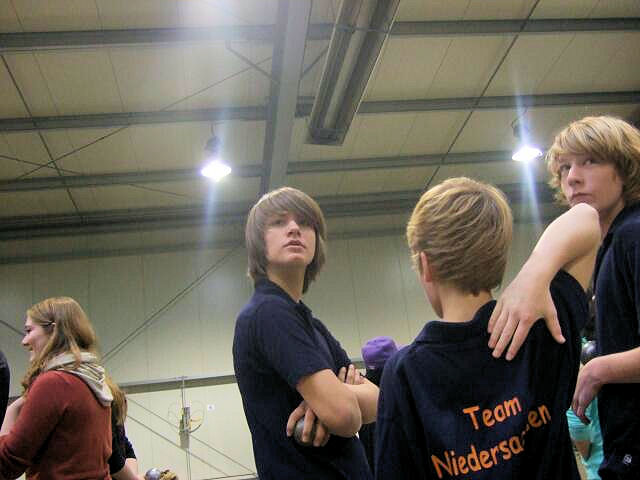 NRW Teams ein starkes Teilnehmerfeld. Gespielt wurden 5 Runden im Schweizer System. In der einen Gruppe traten 9 Juniors Teams und in der anderen Gruppe 8 Cadets Teams und 3 Minimes Teams gegeneinander an. In der Mittagspause wurde von den anwesenden Nachwuchsspielern des BPV ein neuer Jugendsprecher gewählt. Nach ihrer einjährigen Amtszeit wollte Julia Reimers nicht mehr weiter kandidieren. Christian Schneider ist nun der neue Jugendsprecher. Herzlichen Glückwunsch! Um 18:00 Uhr standen die neuen Meister fest. Auch wenn die Minimes in einer Gruppe gegen Cadets spielen mussten, wurde getrennt nach Altersklassen ausgewertet. Die neue Meister sind... bei den Minimes Anna Nguyen, Nicole Leibelt und Marc Hillenberg bei den Cadets, Melissa Bruchmann, Geena Krups und Hendrik Jörges bei den Juniors: André Skiba, Niklas Flocken und Moritz Leibelt Die Minimes haben sich tapfer gegen die älteren Cadets geschlagen und dabei auch für die ein oder andere Überraschung gesorgt. Anna, Nicole und Marc hatten z. B. zwei ihrer drei Siege gegen Cadets erzielt. Bei den Cadets gab es letztendlich 3 Teams, die nach 5 Runden 4 Siege erzielt hatten. Ein Buchholzpunkt weniger als die beiden anderen Teams bescherte dem Gastteam aus Niedersachsen mit Fiedje Reis, Lennart Maier und Mark Oliver Steep eine guten dritten Platz. Den zweiten Platz belegte ein gut aufgelegtes Damenteam mit Jule Klapdor, Hanh Nguyen und Helen Schuldhaus nur deshalb, weil sie im direkten Vergleich dem erstplatzierten Team Melissa, Geena und Hendrik mit 12:13 unterlegen waren. Viele denkbar knappe Ergebnisse zeigen, wie spannend die Begegnungen waren. So mancher Vater erlebte da am Rande des Spielfeldes ungewohnt intensive Gefühlswechselbäder. Viele Partien zeigten zudem auch höchstes Spielniveau. DPV Jugendnationaltrainerin, Gudrun Deterding und der Jugendkaderbeauftragte des BPV NRW, Michael Vierhaus bekamen einiges geboten, was sie für ihre Kadersichtung verwerten konnten. Auch die mitgereisten Landesjugendwarte, Hendryk Wagener für Hessen, Sven Lübbke für Niedersachsen und Eric Barthel für Rheinland Pfalz konnten mit der Leistung ihrer Schützlinge zufrieden sein. Das „Endspiel“ bei den Juniors, bzw. das alles entscheidende Spiel in der 5 Runden gestalteten Niklas, André, Moritz gegen Florian Kalinna, Marcel und Dennis Hoffmann aus Niedersachsen ebenfalls bis zum 13.12 sehr spannend. Damit erzielte das gemischte Team aus NRW und BaWü letztlich 5 Siegen in 5 Runden und war doch deutlicher Sieger vor 5 Teams mit jeweils 3 Siegen. Das Experiment, die Jugend im Triplette bei einer offenen Landesmeisterschaft spielen zu lassen, erscheint angesichts der guten Beteiligung, der guten Resonanz bei den Gästen und den erzielten Erfolgen gelungen. Das Ergebnis macht Mut, bei den Landesmeisterschaften der Jugend im Sommer (Termin: 13.05.2012) in dieser Form weiter zu machen. Der Film, den Norbert Koch freundlicherweise bei der Veranstaltung aufgenommen und schon Montag morgen bei YouTube ins Netz gestellt hat, gibt glaube ich sehr deutlich wieder, wie unsere Jugend bei fairen und konzentrierten Wettkämpfen eine freundschaftliche Atmosphäre entstehen lassen kann.