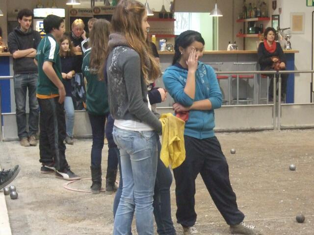 NRW Teams ein starkes Teilnehmerfeld. Gespielt wurden 5 Runden im Schweizer System. In der einen Gruppe traten 9 Juniors Teams und in der anderen Gruppe 8 Cadets Teams und 3 Minimes Teams gegeneinander an. In der Mittagspause wurde von den anwesenden Nachwuchsspielern des BPV ein neuer Jugendsprecher gewählt. Nach ihrer einjährigen Amtszeit wollte Julia Reimers nicht mehr weiter kandidieren. Christian Schneider ist nun der neue Jugendsprecher. Herzlichen Glückwunsch! Um 18:00 Uhr standen die neuen Meister fest. Auch wenn die Minimes in einer Gruppe gegen Cadets spielen mussten, wurde getrennt nach Altersklassen ausgewertet. Die neue Meister sind... bei den Minimes Anna Nguyen, Nicole Leibelt und Marc Hillenberg bei den Cadets, Melissa Bruchmann, Geena Krups und Hendrik Jörges bei den Juniors: André Skiba, Niklas Flocken und Moritz Leibelt Die Minimes haben sich tapfer gegen die älteren Cadets geschlagen und dabei auch für die ein oder andere Überraschung gesorgt. Anna, Nicole und Marc hatten z. B. zwei ihrer drei Siege gegen Cadets erzielt. Bei den Cadets gab es letztendlich 3 Teams, die nach 5 Runden 4 Siege erzielt hatten. Ein Buchholzpunkt weniger als die beiden anderen Teams bescherte dem Gastteam aus Niedersachsen mit Fiedje Reis, Lennart Maier und Mark Oliver Steep eine guten dritten Platz. Den zweiten Platz belegte ein gut aufgelegtes Damenteam mit Jule Klapdor, Hanh Nguyen und Helen Schuldhaus nur deshalb, weil sie im direkten Vergleich dem erstplatzierten Team Melissa, Geena und Hendrik mit 12:13 unterlegen waren. Viele denkbar knappe Ergebnisse zeigen, wie spannend die Begegnungen waren. So mancher Vater erlebte da am Rande des Spielfeldes ungewohnt intensive Gefühlswechselbäder. Viele Partien zeigten zudem auch höchstes Spielniveau. DPV Jugendnationaltrainerin, Gudrun Deterding und der Jugendkaderbeauftragte des BPV NRW, Michael Vierhaus bekamen einiges geboten, was sie für ihre Kadersichtung verwerten konnten. Auch die mitgereisten Landesjugendwarte, Hendryk Wagener für Hessen, Sven Lübbke für Niedersachsen und Eric Barthel für Rheinland Pfalz konnten mit der Leistung ihrer Schützlinge zufrieden sein. Das „Endspiel“ bei den Juniors, bzw. das alles entscheidende Spiel in der 5 Runden gestalteten Niklas, André, Moritz gegen Florian Kalinna, Marcel und Dennis Hoffmann aus Niedersachsen ebenfalls bis zum 13.12 sehr spannend. Damit erzielte das gemischte Team aus NRW und BaWü letztlich 5 Siegen in 5 Runden und war doch deutlicher Sieger vor 5 Teams mit jeweils 3 Siegen. Das Experiment, die Jugend im Triplette bei einer offenen Landesmeisterschaft spielen zu lassen, erscheint angesichts der guten Beteiligung, der guten Resonanz bei den Gästen und den erzielten Erfolgen gelungen. Das Ergebnis macht Mut, bei den Landesmeisterschaften der Jugend im Sommer (Termin: 13.05.2012) in dieser Form weiter zu machen. Der Film, den Norbert Koch freundlicherweise bei der Veranstaltung aufgenommen und schon Montag morgen bei YouTube ins Netz gestellt hat, gibt glaube ich sehr deutlich wieder, wie unsere Jugend bei fairen und konzentrierten Wettkämpfen eine freundschaftliche Atmosphäre entstehen lassen kann.