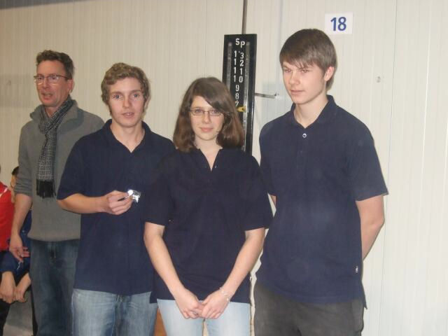 NRW Teams ein starkes Teilnehmerfeld. Gespielt wurden 5 Runden im Schweizer System. In der einen Gruppe traten 9 Juniors Teams und in der anderen Gruppe 8 Cadets Teams und 3 Minimes Teams gegeneinander an. In der Mittagspause wurde von den anwesenden Nachwuchsspielern des BPV ein neuer Jugendsprecher gewählt. Nach ihrer einjährigen Amtszeit wollte Julia Reimers nicht mehr weiter kandidieren. Christian Schneider ist nun der neue Jugendsprecher. Herzlichen Glückwunsch! Um 18:00 Uhr standen die neuen Meister fest. Auch wenn die Minimes in einer Gruppe gegen Cadets spielen mussten, wurde getrennt nach Altersklassen ausgewertet. Die neue Meister sind... bei den Minimes Anna Nguyen, Nicole Leibelt und Marc Hillenberg bei den Cadets, Melissa Bruchmann, Geena Krups und Hendrik Jörges bei den Juniors: André Skiba, Niklas Flocken und Moritz Leibelt Die Minimes haben sich tapfer gegen die älteren Cadets geschlagen und dabei auch für die ein oder andere Überraschung gesorgt. Anna, Nicole und Marc hatten z. B. zwei ihrer drei Siege gegen Cadets erzielt. Bei den Cadets gab es letztendlich 3 Teams, die nach 5 Runden 4 Siege erzielt hatten. Ein Buchholzpunkt weniger als die beiden anderen Teams bescherte dem Gastteam aus Niedersachsen mit Fiedje Reis, Lennart Maier und Mark Oliver Steep eine guten dritten Platz. Den zweiten Platz belegte ein gut aufgelegtes Damenteam mit Jule Klapdor, Hanh Nguyen und Helen Schuldhaus nur deshalb, weil sie im direkten Vergleich dem erstplatzierten Team Melissa, Geena und Hendrik mit 12:13 unterlegen waren. Viele denkbar knappe Ergebnisse zeigen, wie spannend die Begegnungen waren. So mancher Vater erlebte da am Rande des Spielfeldes ungewohnt intensive Gefühlswechselbäder. Viele Partien zeigten zudem auch höchstes Spielniveau. DPV Jugendnationaltrainerin, Gudrun Deterding und der Jugendkaderbeauftragte des BPV NRW, Michael Vierhaus bekamen einiges geboten, was sie für ihre Kadersichtung verwerten konnten. Auch die mitgereisten Landesjugendwarte, Hendryk Wagener für Hessen, Sven Lübbke für Niedersachsen und Eric Barthel für Rheinland Pfalz konnten mit der Leistung ihrer Schützlinge zufrieden sein. Das „Endspiel“ bei den Juniors, bzw. das alles entscheidende Spiel in der 5 Runden gestalteten Niklas, André, Moritz gegen Florian Kalinna, Marcel und Dennis Hoffmann aus Niedersachsen ebenfalls bis zum 13.12 sehr spannend. Damit erzielte das gemischte Team aus NRW und BaWü letztlich 5 Siegen in 5 Runden und war doch deutlicher Sieger vor 5 Teams mit jeweils 3 Siegen. Das Experiment, die Jugend im Triplette bei einer offenen Landesmeisterschaft spielen zu lassen, erscheint angesichts der guten Beteiligung, der guten Resonanz bei den Gästen und den erzielten Erfolgen gelungen. Das Ergebnis macht Mut, bei den Landesmeisterschaften der Jugend im Sommer (Termin: 13.05.2012) in dieser Form weiter zu machen. Der Film, den Norbert Koch freundlicherweise bei der Veranstaltung aufgenommen und schon Montag morgen bei YouTube ins Netz gestellt hat, gibt glaube ich sehr deutlich wieder, wie unsere Jugend bei fairen und konzentrierten Wettkämpfen eine freundschaftliche Atmosphäre entstehen lassen kann.
