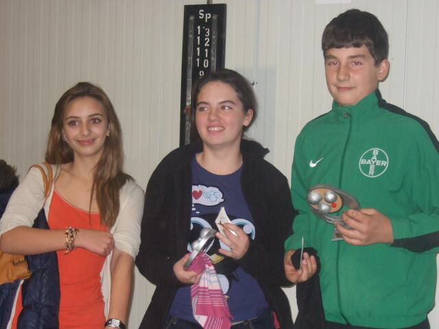 NRW Teams ein starkes Teilnehmerfeld. Gespielt wurden 5 Runden im Schweizer System. In der einen Gruppe traten 9 Juniors Teams und in der anderen Gruppe 8 Cadets Teams und 3 Minimes Teams gegeneinander an. In der Mittagspause wurde von den anwesenden Nachwuchsspielern des BPV ein neuer Jugendsprecher gewählt. Nach ihrer einjährigen Amtszeit wollte Julia Reimers nicht mehr weiter kandidieren. Christian Schneider ist nun der neue Jugendsprecher. Herzlichen Glückwunsch! Um 18:00 Uhr standen die neuen Meister fest. Auch wenn die Minimes in einer Gruppe gegen Cadets spielen mussten, wurde getrennt nach Altersklassen ausgewertet. Die neue Meister sind... bei den Minimes Anna Nguyen, Nicole Leibelt und Marc Hillenberg bei den Cadets, Melissa Bruchmann, Geena Krups und Hendrik Jörges bei den Juniors: André Skiba, Niklas Flocken und Moritz Leibelt Die Minimes haben sich tapfer gegen die älteren Cadets geschlagen und dabei auch für die ein oder andere Überraschung gesorgt. Anna, Nicole und Marc hatten z. B. zwei ihrer drei Siege gegen Cadets erzielt. Bei den Cadets gab es letztendlich 3 Teams, die nach 5 Runden 4 Siege erzielt hatten. Ein Buchholzpunkt weniger als die beiden anderen Teams bescherte dem Gastteam aus Niedersachsen mit Fiedje Reis, Lennart Maier und Mark Oliver Steep eine guten dritten Platz. Den zweiten Platz belegte ein gut aufgelegtes Damenteam mit Jule Klapdor, Hanh Nguyen und Helen Schuldhaus nur deshalb, weil sie im direkten Vergleich dem erstplatzierten Team Melissa, Geena und Hendrik mit 12:13 unterlegen waren. Viele denkbar knappe Ergebnisse zeigen, wie spannend die Begegnungen waren. So mancher Vater erlebte da am Rande des Spielfeldes ungewohnt intensive Gefühlswechselbäder. Viele Partien zeigten zudem auch höchstes Spielniveau. DPV Jugendnationaltrainerin, Gudrun Deterding und der Jugendkaderbeauftragte des BPV NRW, Michael Vierhaus bekamen einiges geboten, was sie für ihre Kadersichtung verwerten konnten. Auch die mitgereisten Landesjugendwarte, Hendryk Wagener für Hessen, Sven Lübbke für Niedersachsen und Eric Barthel für Rheinland Pfalz konnten mit der Leistung ihrer Schützlinge zufrieden sein. Das „Endspiel“ bei den Juniors, bzw. das alles entscheidende Spiel in der 5 Runden gestalteten Niklas, André, Moritz gegen Florian Kalinna, Marcel und Dennis Hoffmann aus Niedersachsen ebenfalls bis zum 13.12 sehr spannend. Damit erzielte das gemischte Team aus NRW und BaWü letztlich 5 Siegen in 5 Runden und war doch deutlicher Sieger vor 5 Teams mit jeweils 3 Siegen. Das Experiment, die Jugend im Triplette bei einer offenen Landesmeisterschaft spielen zu lassen, erscheint angesichts der guten Beteiligung, der guten Resonanz bei den Gästen und den erzielten Erfolgen gelungen. Das Ergebnis macht Mut, bei den Landesmeisterschaften der Jugend im Sommer (Termin: 13.05.2012) in dieser Form weiter zu machen. Der Film, den Norbert Koch freundlicherweise bei der Veranstaltung aufgenommen und schon Montag morgen bei YouTube ins Netz gestellt hat, gibt glaube ich sehr deutlich wieder, wie unsere Jugend bei fairen und konzentrierten Wettkämpfen eine freundschaftliche Atmosphäre entstehen lassen kann.