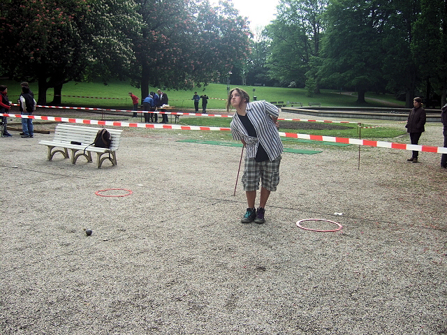 ebenfalls auszufallen. Aber der Bundestrainer Bernd Wormer und der DPV Vize Präsident Jugend Raymund Meier reagierten flexibel und änderten ihr Lehrgangsprogramm. Am Sonntag traten deshalb 3 „DPV-Teams„ bei den Jugendmeisterschaften an, die intensiv unter Wettkampfbedingungen beobachtet werden konnten. Niedersachsen steuerte auch noch 2 starke Teams bei. Insgesamt 5 Gastteams gehörten so zum insgesamt 15 Teams großen Teilnehmerfeld (9 Juniors Teams, 6 Cadets Teams). Dann gab es auch noch Probleme mit den bestellten Pokalen, die erst in allerletzter Minute geliefert werden konnten. Bei den Jüngsten gab es leider so wenig Meldungen, dass ein einzelnes reines Minimes Team gemeinsam mit den älteren Cadets spielen musste. Mit dem Wetter hatten wir dann allerdings wieder sehr viel Glück. Es blieb trocken, die Temperaturen stiegen zwar nur langsam an aber ab Mittags wärmte die Sonne doch noch. Hans Krotz und sein Helferteam von Boule D`Aix la Chapelle waren der Jugend, freundliche, zuvorkommende und vorbildliche Gastgeber. Danke!!! Zum Turnierverlauf Die Jüngsten „rockten“ das Turnier und gewannen die ersten vier Runden souverän. Ausgerechnet in der letzten Runde, als ein Gegner bereitstand, der bis dahin noch kein einziges Spiel gewonnen hatte, realisierten die Drei wohl, dass sie die Chance auf den Turniersieg hatten und verloren prompt „Funny“ d. h. zu Null. Am Ende reichte es trotzdem zum Gesamtsieg, weil sie bei gleicher Zahl an gewonnen Spielrunden gegen ihre Konkurrentinnen, dem Mädchenteam aus Kettwig und Lintorf (ebenfalls 4 gewonnene Runden) im direkten Vergleich gewonnen hatten. Bei den Juniors fand sich ebenfalls ein reines Mädchenteam trotz starker Konkurrenz auf dem 2. Platz wieder. Immerhin waren 8 Nationalkaderspieler aufgeboten. Ich meine, dass ist wieder eine sehr starke Leistung unseres weiblichen Nachwuchs. Wenn es uns gelänge und ich möchte an dieser Stelle auch ausdrücklich die Verantwortlichen in den Vereinen mit einbeziehen, hier weiter zu fördern und den Mädchen mehr Chancen böten, sich zu zeigen und zu beweisen, hätten wir vielleicht in nicht allzu ferner Zukunft auch wieder mehr junge Frauen im Jugendnationalkader. Dirk Beckschulte Jugendwart BPV NRW Tireurwettbewerb