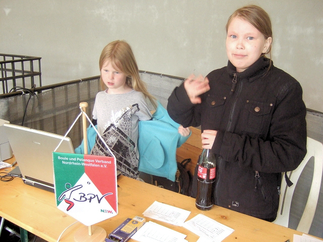 ebenfalls auszufallen. Aber der Bundestrainer Bernd Wormer und der DPV Vize Präsident Jugend Raymund Meier reagierten flexibel und änderten ihr Lehrgangsprogramm. Am Sonntag traten deshalb 3 „DPV-Teams„ bei den Jugendmeisterschaften an, die intensiv unter Wettkampfbedingungen beobachtet werden konnten. Niedersachsen steuerte auch noch 2 starke Teams bei. Insgesamt 5 Gastteams gehörten so zum insgesamt 15 Teams großen Teilnehmerfeld (9 Juniors Teams, 6 Cadets Teams). Dann gab es auch noch Probleme mit den bestellten Pokalen, die erst in allerletzter Minute geliefert werden konnten. Bei den Jüngsten gab es leider so wenig Meldungen, dass ein einzelnes reines Minimes Team gemeinsam mit den älteren Cadets spielen musste. Mit dem Wetter hatten wir dann allerdings wieder sehr viel Glück. Es blieb trocken, die Temperaturen stiegen zwar nur langsam an aber ab Mittags wärmte die Sonne doch noch. Hans Krotz und sein Helferteam von Boule D`Aix la Chapelle waren der Jugend, freundliche, zuvorkommende und vorbildliche Gastgeber. Danke!!! Zum Turnierverlauf Die Jüngsten „rockten“ das Turnier und gewannen die ersten vier Runden souverän. Ausgerechnet in der letzten Runde, als ein Gegner bereitstand, der bis dahin noch kein einziges Spiel gewonnen hatte, realisierten die Drei wohl, dass sie die Chance auf den Turniersieg hatten und verloren prompt „Funny“ d. h. zu Null. Am Ende reichte es trotzdem zum Gesamtsieg, weil sie bei gleicher Zahl an gewonnen Spielrunden gegen ihre Konkurrentinnen, dem Mädchenteam aus Kettwig und Lintorf (ebenfalls 4 gewonnene Runden) im direkten Vergleich gewonnen hatten. Bei den Juniors fand sich ebenfalls ein reines Mädchenteam trotz starker Konkurrenz auf dem 2. Platz wieder. Immerhin waren 8 Nationalkaderspieler aufgeboten. Ich meine, dass ist wieder eine sehr starke Leistung unseres weiblichen Nachwuchs. Wenn es uns gelänge und ich möchte an dieser Stelle auch ausdrücklich die Verantwortlichen in den Vereinen mit einbeziehen, hier weiter zu fördern und den Mädchen mehr Chancen böten, sich zu zeigen und zu beweisen, hätten wir vielleicht in nicht allzu ferner Zukunft auch wieder mehr junge Frauen im Jugendnationalkader. Dirk Beckschulte Jugendwart BPV NRW Tireurwettbewerb