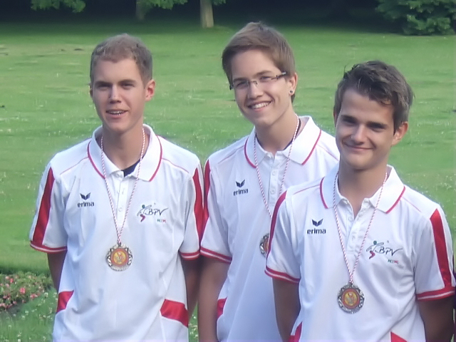 offenen Niedersachen Meisterschaften der Jugend. Der Verein „Boule-Team Rettmer“ hatte eingeladen. Am Samstag Abend wurden wir als Gäste des Vereins auf dem zwar kleinen aber sehr gemütlichen Boulespielgelände in Rettmer zum Grillabend eingeladen. Dabei konnte auch die eine und andere Begrüßungsrunde gespielt werden. Mit Anbruch der Dunkelheit aber brach die BPV Delegation gemeinsam mit einigen NiSa Spielern zur nur wenig entfernten Jugendherberge auf, wo wir übernachten konnten. Die Jugendherberge ist übrigens als Anlaufpunkt für einen längeren Besuch in Lüneburg durchaus zu empfehlen. Am nächsten Tag begaben wir uns dann in den Kurpark von Lüneburg, wo das B-Team Rettmer seine größeren Turniere ausrichtet. Ein tolles Ambiente, tolle Gastgeber, allerdings nur fast tolles Wetter dafür aber eine super nette und sehr freundschaftliche Atmosphäre garantierten spannende Wettkämpfe. Unser Top Team mit Markus Rosik, Moritz Leibelt und Niklas Flocken begann das Turnier sehr konzentriert, in dem bei den Juniors in 5 Runden „Jeder gegen Jeden“ spielte. Nach 4 Runden waren NiSa 2 und NRW 1 ungeschlagen, insofern gab es quasi ein „Endspiel“, was zugunsten sehr gut aufspielender Niedersachsen ausging. Im Ergebnis sprang für ein NRW ein 2. und ein 5. Platz heraus. Dafür holte Niklas Flocken die Meisterschaft im Präzisionsschießen nach NRW. Moritz Leibelt belegte hier den 2. Platz. Das Resümee Der sportliche Erfolg kann sich sehen lassen. Wichtiger aber erscheint mir die sportliche und „zwischensportliche“ Verständigung. Wir sind auf dem Weg mit Kooperationen bei gemeinsamen Kadertrainings und gegenseitigen Besuchen voneinander zu lernen und zu profitieren. Dies ist ein erster Schritt, der vielleicht, bzw. hoffentlich ausgebaut werden kann und sich irgendwann auch auf das benachbarte Ausland übertragen lässt, getreu dem Motto: „Wir wollen über den eigenen Tellerrand schauen lernen“. Mein besonderer Dank gilt den Boulefreunden aus Rettmer: Ihr seid wirklich außergewöhnliche Gastgeber. Danke für dieses schöne Wochenende!!! Dirk Beckschulte Jugendwart BPV NRW |