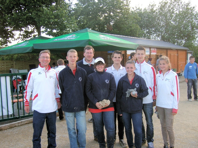 Höhepunkte des Turnierjahres. Nationalteams aus Frankreich, Italien, Belgien, Luxemburg, Schweiz, Israel, England, Wales, Niederlande, Deutschland, starke Teams aus den französischen Departments, aus deutschen Landesverbänden, wie Niedersachsen, Rheinland Pfalz, Hessen und NRW waren in beiden Turnieren am Start. Letztlich dominierten die französischen Teams beide Classements. Die Frage war aber, wie gut konnten sich unsere Teams behaupten? Die Antwort gibt Hoffnungen für die Zukunft. Unsere „BPV NRW Spitzenkräfte“ der Jugend standen in diesem Jahr allesamt im Dienst des Nationalkaders. Moritz Leibelt, Niklas Flocken spielten mit Dominique Trouillard vom Baden Württembergischen Landesverband. Lasse Stentenbach spielte mit Luis Maecker, Hessen und Janik Weis aus Rheinland Pfalz. So traten für NRW im Classement „Jeunes“ Markus Rosik, Nico Wleklik und Kerstin Lisner an. Im Classement „Dames“ waren neben BPV NRW 1 mit Daniela Thelen, Anna Lazaridis und Sandra „Sunny“ Maghs unsere BPV NRW 2 Küken, Julia Reimers, Helen Schuldhaus und Hanh Nguyen im Rennen. Den Samstag überstanden die Teams in ihren Poules ganz unterschiedlich. Die NRW 1 Mädels erwischten einen schwarzen Tag und blieben unter ihren Möglichkeiten. Sie belegten in ihrem Poule den 6. Platz. Die Küken konnten sich da schon deutlich besser behaupten. Sie schlugen, wie im vergangenen Jahr unter anderen das DPV 2 Damen Team, unter den Augen des Bundestrainers, der die Leistungen sehr wohlwollend zur Kenntnis nahm, und kamen mit insgesamt 5 Siegen auf einen beachtenswerten 3. Platz. Leider konnte das Team am Sonntag nicht ganz an die Leistungen des Vortags anknüpfen und musste vielleicht auch den sieben Poule-Partien, bei teilweise sehr unangenehmem Wetter Tribut zollen. Im 1/4-Finale des Concours C verloren die Youngster gegen Luxemburg 1, die am Samstag nach einem sehr spannenden Spiel noch 8:7 bezwungen wurden (Zeitlimit). Der 13. Platz im Gesamt Classement bedeutet für eines der jüngsten Teams im Feld mehr als nur einen Achtungserfolg. Das NRW Team im Classement der „Jeunes“ erzielte 4 Siege in 7 Runden und hätte eigentlich damit am nächsten Tag genauso wie die NRW 2 Küken im B Turnier weiterspielen müssen. Ein Ausfall der Elektronik, vielleicht bedingt durch das ausgesprochen feuchte Wetter, bescherte den Jeunes aber einen Start im Concour C. Der Fehler wurde leider trotz meiner Intervention nicht mehr korrigiert. Kerstin, Markus und Nico verloren erst nach Erfolgen im 1/8-Finale und im ¼-Finale gegen Lasse und sein DPV-Team im Halbfinale gegen den späteren Sieger des Concour C. So blieb das Spiel um den 3. Platz. Dort wartete Rheinland Pfalz auf die Drei. Obwohl die Luft eigentlich raus war, die äußeren Bedingungen sehr widrig waren (immer wieder regnete es, die Temperaturen waren auch nicht wirklich sommerlich) reichte die Konzentration für einen letztlich sichern Sieg und damit dem 3. Platz im Concour C, was im Classement Final einem 19. Platz entspricht. Unsere Jungs im Nationaldress mussten sich im Concour A erst dem späteren Sieger, dem Club France 2 geschlagen geben. Gemessen an der starken internationalen Konkurrenz sind die Ergebnisse ein sportlicher Erfolg für alle Teilnehmer/innen aus NRW. NRW hat einen ausgezeichneten Eindruck hinterlassen. Mir wurde versichert, dass wir auch im kommenden Jahr nicht nur wieder ein gern gesehener Gast sind, wir wurden gar gebeten, unbedingt wieder zu kommen. Allen widrigen Bedingungen und der anstrengenden Fahrerei zum Trotz hat es sich gelohnt, diesen Aufwand zu betreiben. Motiviert, konzentriert und mit guter Laune traten alle Teilnehmer/innen und Betreuer als Team auf und werden Kayl 2012 in guter Erinnerung behalten. Noch ist das Motto: Mitmachen, staunen, lernen und irgendwann ganz vorne mitmischen. Wir sind aber auf einem guten Weg! Diese Investition in die Jugend und damit in Zukunft des Pétanque lohnt sich. Dirk Beckschulte Jugendwart BPV NRW und Martin Wleklik Jugendausschuss BPV NRW |