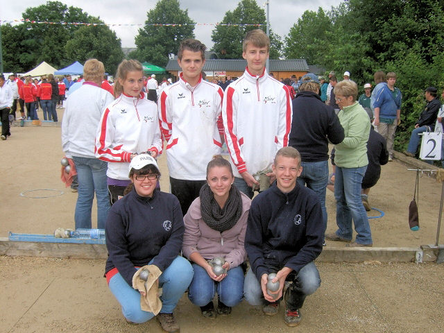 Höhepunkte des Turnierjahres. Nationalteams aus Frankreich, Italien, Belgien, Luxemburg, Schweiz, Israel, England, Wales, Niederlande, Deutschland, starke Teams aus den französischen Departments, aus deutschen Landesverbänden, wie Niedersachsen, Rheinland Pfalz, Hessen und NRW waren in beiden Turnieren am Start. Letztlich dominierten die französischen Teams beide Classements. Die Frage war aber, wie gut konnten sich unsere Teams behaupten? Die Antwort gibt Hoffnungen für die Zukunft. Unsere „BPV NRW Spitzenkräfte“ der Jugend standen in diesem Jahr allesamt im Dienst des Nationalkaders. Moritz Leibelt, Niklas Flocken spielten mit Dominique Trouillard vom Baden Württembergischen Landesverband. Lasse Stentenbach spielte mit Luis Maecker, Hessen und Janik Weis aus Rheinland Pfalz. So traten für NRW im Classement „Jeunes“ Markus Rosik, Nico Wleklik und Kerstin Lisner an. Im Classement „Dames“ waren neben BPV NRW 1 mit Daniela Thelen, Anna Lazaridis und Sandra „Sunny“ Maghs unsere BPV NRW 2 Küken, Julia Reimers, Helen Schuldhaus und Hanh Nguyen im Rennen. Den Samstag überstanden die Teams in ihren Poules ganz unterschiedlich. Die NRW 1 Mädels erwischten einen schwarzen Tag und blieben unter ihren Möglichkeiten. Sie belegten in ihrem Poule den 6. Platz. Die Küken konnten sich da schon deutlich besser behaupten. Sie schlugen, wie im vergangenen Jahr unter anderen das DPV 2 Damen Team, unter den Augen des Bundestrainers, der die Leistungen sehr wohlwollend zur Kenntnis nahm, und kamen mit insgesamt 5 Siegen auf einen beachtenswerten 3. Platz. Leider konnte das Team am Sonntag nicht ganz an die Leistungen des Vortags anknüpfen und musste vielleicht auch den sieben Poule-Partien, bei teilweise sehr unangenehmem Wetter Tribut zollen. Im 1/4-Finale des Concours C verloren die Youngster gegen Luxemburg 1, die am Samstag nach einem sehr spannenden Spiel noch 8:7 bezwungen wurden (Zeitlimit). Der 13. Platz im Gesamt Classement bedeutet für eines der jüngsten Teams im Feld mehr als nur einen Achtungserfolg. Das NRW Team im Classement der „Jeunes“ erzielte 4 Siege in 7 Runden und hätte eigentlich damit am nächsten Tag genauso wie die NRW 2 Küken im B Turnier weiterspielen müssen. Ein Ausfall der Elektronik, vielleicht bedingt durch das ausgesprochen feuchte Wetter, bescherte den Jeunes aber einen Start im Concour C. Der Fehler wurde leider trotz meiner Intervention nicht mehr korrigiert. Kerstin, Markus und Nico verloren erst nach Erfolgen im 1/8-Finale und im ¼-Finale gegen Lasse und sein DPV-Team im Halbfinale gegen den späteren Sieger des Concour C. So blieb das Spiel um den 3. Platz. Dort wartete Rheinland Pfalz auf die Drei. Obwohl die Luft eigentlich raus war, die äußeren Bedingungen sehr widrig waren (immer wieder regnete es, die Temperaturen waren auch nicht wirklich sommerlich) reichte die Konzentration für einen letztlich sichern Sieg und damit dem 3. Platz im Concour C, was im Classement Final einem 19. Platz entspricht. Unsere Jungs im Nationaldress mussten sich im Concour A erst dem späteren Sieger, dem Club France 2 geschlagen geben. Gemessen an der starken internationalen Konkurrenz sind die Ergebnisse ein sportlicher Erfolg für alle Teilnehmer/innen aus NRW. NRW hat einen ausgezeichneten Eindruck hinterlassen. Mir wurde versichert, dass wir auch im kommenden Jahr nicht nur wieder ein gern gesehener Gast sind, wir wurden gar gebeten, unbedingt wieder zu kommen. Allen widrigen Bedingungen und der anstrengenden Fahrerei zum Trotz hat es sich gelohnt, diesen Aufwand zu betreiben. Motiviert, konzentriert und mit guter Laune traten alle Teilnehmer/innen und Betreuer als Team auf und werden Kayl 2012 in guter Erinnerung behalten. Noch ist das Motto: Mitmachen, staunen, lernen und irgendwann ganz vorne mitmischen. Wir sind aber auf einem guten Weg! Diese Investition in die Jugend und damit in Zukunft des Pétanque lohnt sich. Dirk Beckschulte Jugendwart BPV NRW und Martin Wleklik Jugendausschuss BPV NRW |