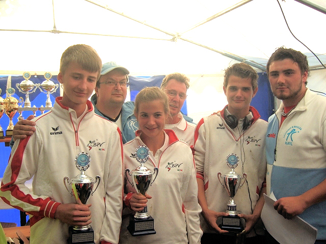 Höhepunkte des Turnierjahres. Nationalteams aus Frankreich, Italien, Belgien, Luxemburg, Schweiz, Israel, England, Wales, Niederlande, Deutschland, starke Teams aus den französischen Departments, aus deutschen Landesverbänden, wie Niedersachsen, Rheinland Pfalz, Hessen und NRW waren in beiden Turnieren am Start. Letztlich dominierten die französischen Teams beide Classements. Die Frage war aber, wie gut konnten sich unsere Teams behaupten? Die Antwort gibt Hoffnungen für die Zukunft. Unsere „BPV NRW Spitzenkräfte“ der Jugend standen in diesem Jahr allesamt im Dienst des Nationalkaders. Moritz Leibelt, Niklas Flocken spielten mit Dominique Trouillard vom Baden Württembergischen Landesverband. Lasse Stentenbach spielte mit Luis Maecker, Hessen und Janik Weis aus Rheinland Pfalz. So traten für NRW im Classement „Jeunes“ Markus Rosik, Nico Wleklik und Kerstin Lisner an. Im Classement „Dames“ waren neben BPV NRW 1 mit Daniela Thelen, Anna Lazaridis und Sandra „Sunny“ Maghs unsere BPV NRW 2 Küken, Julia Reimers, Helen Schuldhaus und Hanh Nguyen im Rennen. Den Samstag überstanden die Teams in ihren Poules ganz unterschiedlich. Die NRW 1 Mädels erwischten einen schwarzen Tag und blieben unter ihren Möglichkeiten. Sie belegten in ihrem Poule den 6. Platz. Die Küken konnten sich da schon deutlich besser behaupten. Sie schlugen, wie im vergangenen Jahr unter anderen das DPV 2 Damen Team, unter den Augen des Bundestrainers, der die Leistungen sehr wohlwollend zur Kenntnis nahm, und kamen mit insgesamt 5 Siegen auf einen beachtenswerten 3. Platz. Leider konnte das Team am Sonntag nicht ganz an die Leistungen des Vortags anknüpfen und musste vielleicht auch den sieben Poule-Partien, bei teilweise sehr unangenehmem Wetter Tribut zollen. Im 1/4-Finale des Concours C verloren die Youngster gegen Luxemburg 1, die am Samstag nach einem sehr spannenden Spiel noch 8:7 bezwungen wurden (Zeitlimit). Der 13. Platz im Gesamt Classement bedeutet für eines der jüngsten Teams im Feld mehr als nur einen Achtungserfolg. Das NRW Team im Classement der „Jeunes“ erzielte 4 Siege in 7 Runden und hätte eigentlich damit am nächsten Tag genauso wie die NRW 2 Küken im B Turnier weiterspielen müssen. Ein Ausfall der Elektronik, vielleicht bedingt durch das ausgesprochen feuchte Wetter, bescherte den Jeunes aber einen Start im Concour C. Der Fehler wurde leider trotz meiner Intervention nicht mehr korrigiert. Kerstin, Markus und Nico verloren erst nach Erfolgen im 1/8-Finale und im ¼-Finale gegen Lasse und sein DPV-Team im Halbfinale gegen den späteren Sieger des Concour C. So blieb das Spiel um den 3. Platz. Dort wartete Rheinland Pfalz auf die Drei. Obwohl die Luft eigentlich raus war, die äußeren Bedingungen sehr widrig waren (immer wieder regnete es, die Temperaturen waren auch nicht wirklich sommerlich) reichte die Konzentration für einen letztlich sichern Sieg und damit dem 3. Platz im Concour C, was im Classement Final einem 19. Platz entspricht. Unsere Jungs im Nationaldress mussten sich im Concour A erst dem späteren Sieger, dem Club France 2 geschlagen geben. Gemessen an der starken internationalen Konkurrenz sind die Ergebnisse ein sportlicher Erfolg für alle Teilnehmer/innen aus NRW. NRW hat einen ausgezeichneten Eindruck hinterlassen. Mir wurde versichert, dass wir auch im kommenden Jahr nicht nur wieder ein gern gesehener Gast sind, wir wurden gar gebeten, unbedingt wieder zu kommen. Allen widrigen Bedingungen und der anstrengenden Fahrerei zum Trotz hat es sich gelohnt, diesen Aufwand zu betreiben. Motiviert, konzentriert und mit guter Laune traten alle Teilnehmer/innen und Betreuer als Team auf und werden Kayl 2012 in guter Erinnerung behalten. Noch ist das Motto: Mitmachen, staunen, lernen und irgendwann ganz vorne mitmischen. Wir sind aber auf einem guten Weg! Diese Investition in die Jugend und damit in Zukunft des Pétanque lohnt sich. Dirk Beckschulte Jugendwart BPV NRW und Martin Wleklik Jugendausschuss BPV NRW |