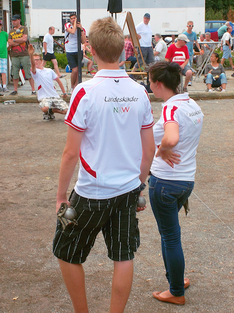 in Richtung Bacharach zum 22. Mittelrheinpokal. Das Gemeinsame Zeltlager bot eine tolle Möglichkeit um die neuen Espoirs Loo Stening, sowie Björn und Tobi Lubitz einzugliedern. Durch meine guten Kontakte zum Landesverband Ost verabredeten wir uns vor Ort mit dem zuständigen Sportwart Bastian Wienrich, sowie weiteren Spielern aus dem Landesverband welche u.a. auch beim Länderpokal in Düsseldorf vertreten waren. Die Stimmung unter allen Beteiligten war super, alle verstanden sich auf Anhieb gut und Sie sollten die anstehen drei Tage kaum zu trennen sein. Vorbildlich von allen Akteuren war neben der Stimmung vor allem die Disziplin, Konzentration und Ernsthaftigkeit für dieses große Event zwischen den Weinbergen. Leider musste kurzfristig aus beruflichen Gründen unser Espoirs Sprecher Jorgo Schmiler absagen welches wir durch den Einsatz eines Gastes aus dem LV Ost kompensieren konnten. Diese Erfahrung tat jedem Beteiligten jedoch sichtlich gut und war hilfreich... An den Start gingen für die NRW Espoirs Ewelin Breza, Mesut Uluocakli, Loo Stening, Tobi und Björn Lubitz, sowie die Gäste Laura Schneider bzw. Bastian Wienrich. Während der erste Tag (174 Triplettes) noch nicht so erfolgreich verlief, ein Team im D-Turnier, das zweite schied im 16tel Finale A aus, verlief es am zweiten Tag wesentlich erfreulicher. Auch am zweiten Tag reisten mit 165 Triplettes viele starke Mannschaften aus der ganzen Nation, sowie Luxemburg, Niederlanden, Frankreich und Belgien an. Nach den Vorrunden und der Cadrage fanden wir uns im 16tel Finale A- bzw. B wieder... während sich das Team Uluocalki, Schneider, T. Lubitz im B-Turnier mit einer Niederlage verabschiedete drehten die NRW Espoirs 1 auf und siegten weiterhin. Im Viertelfinale hießen die Gegner Raphael Gharany, David Bourdoux und Jannik Schaake... der Sieger hieß auch hier NRW. Eine Sensation ! Im Halbfinale wartete ein Team aus Marburg auf das Team B. Lubitz, Stening und Wienrich... souveräner Sieg durch die Youngster aus NRW mit östlicher Unterstützung. Im Finale des A- Turnier... es war mittlerweile nach 23 Uhr, hieß der Gegner Christoph Fisch aus Saarlouis, sowie Ed und Michelle Conter aus Esch / LUX. Auch hier ein klarer Sieg durch NRW, welche vor Ort durch eine große Menge Zuschauer aus NRW unterstützt wurden. Kurz Erwähnen möchte ich noch einen weiteren NRW Espoirs Kader Spieler Moritz Wiegand, welcher mit seinen Partnern Fabian Schneider und Steffen Letmathe im Achtelfinale A den frischgebackenen Deutschen Meister Foufik Faci besiegten. Im Viertelfinale führten sie hoch und unterlagen dennoch einem Team aus LUX. Trotzdem ein toller Erfolg ! Vielen Dank an die Unterstützung unserer Freunde aus dem LV Ost, sowie einer tollen Mannschaftsleistung, Zusammenhalt und Disziplin. Kai Murek Kaderbetreuer BPV NRW |