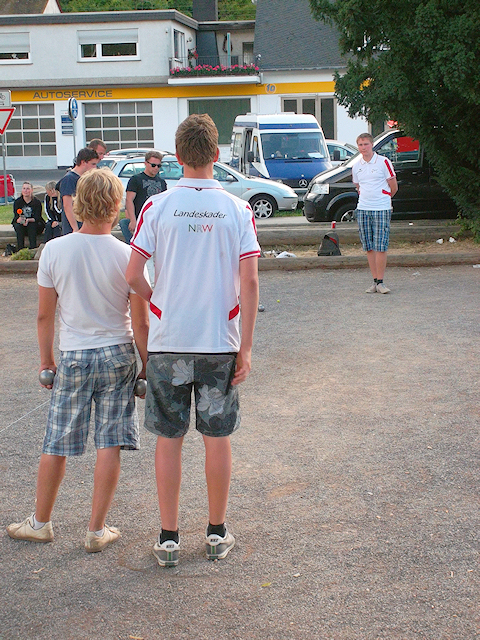 in Richtung Bacharach zum 22. Mittelrheinpokal. Das Gemeinsame Zeltlager bot eine tolle Möglichkeit um die neuen Espoirs Loo Stening, sowie Björn und Tobi Lubitz einzugliedern. Durch meine guten Kontakte zum Landesverband Ost verabredeten wir uns vor Ort mit dem zuständigen Sportwart Bastian Wienrich, sowie weiteren Spielern aus dem Landesverband welche u.a. auch beim Länderpokal in Düsseldorf vertreten waren. Die Stimmung unter allen Beteiligten war super, alle verstanden sich auf Anhieb gut und Sie sollten die anstehen drei Tage kaum zu trennen sein. Vorbildlich von allen Akteuren war neben der Stimmung vor allem die Disziplin, Konzentration und Ernsthaftigkeit für dieses große Event zwischen den Weinbergen. Leider musste kurzfristig aus beruflichen Gründen unser Espoirs Sprecher Jorgo Schmiler absagen welches wir durch den Einsatz eines Gastes aus dem LV Ost kompensieren konnten. Diese Erfahrung tat jedem Beteiligten jedoch sichtlich gut und war hilfreich... An den Start gingen für die NRW Espoirs Ewelin Breza, Mesut Uluocakli, Loo Stening, Tobi und Björn Lubitz, sowie die Gäste Laura Schneider bzw. Bastian Wienrich. Während der erste Tag (174 Triplettes) noch nicht so erfolgreich verlief, ein Team im D-Turnier, das zweite schied im 16tel Finale A aus, verlief es am zweiten Tag wesentlich erfreulicher. Auch am zweiten Tag reisten mit 165 Triplettes viele starke Mannschaften aus der ganzen Nation, sowie Luxemburg, Niederlanden, Frankreich und Belgien an. Nach den Vorrunden und der Cadrage fanden wir uns im 16tel Finale A- bzw. B wieder... während sich das Team Uluocalki, Schneider, T. Lubitz im B-Turnier mit einer Niederlage verabschiedete drehten die NRW Espoirs 1 auf und siegten weiterhin. Im Viertelfinale hießen die Gegner Raphael Gharany, David Bourdoux und Jannik Schaake... der Sieger hieß auch hier NRW. Eine Sensation ! Im Halbfinale wartete ein Team aus Marburg auf das Team B. Lubitz, Stening und Wienrich... souveräner Sieg durch die Youngster aus NRW mit östlicher Unterstützung. Im Finale des A- Turnier... es war mittlerweile nach 23 Uhr, hieß der Gegner Christoph Fisch aus Saarlouis, sowie Ed und Michelle Conter aus Esch / LUX. Auch hier ein klarer Sieg durch NRW, welche vor Ort durch eine große Menge Zuschauer aus NRW unterstützt wurden. Kurz Erwähnen möchte ich noch einen weiteren NRW Espoirs Kader Spieler Moritz Wiegand, welcher mit seinen Partnern Fabian Schneider und Steffen Letmathe im Achtelfinale A den frischgebackenen Deutschen Meister Foufik Faci besiegten. Im Viertelfinale führten sie hoch und unterlagen dennoch einem Team aus LUX. Trotzdem ein toller Erfolg ! Vielen Dank an die Unterstützung unserer Freunde aus dem LV Ost, sowie einer tollen Mannschaftsleistung, Zusammenhalt und Disziplin. Kai Murek Kaderbetreuer BPV NRW |
