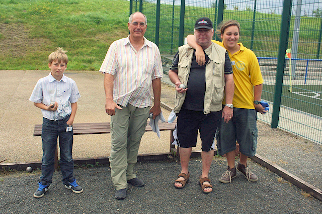 regelmäßig die Serie von Generationenturnieren. Unter der Federführung von Manfred Vey, fand am 26.08.2012 der vierte von sechs Spieltagen der Generationenturniere 2012 auf dem Boulodrome in Neunkirchen-Seelscheid statt. Der heimische Verein richtete zum wiederholten Male einen Spieltag aus. Insgesamt nahmen 8 Kinder und Jugendliche, von denen die meisten der Kooperation des BC mit der Gemeinschaftshauptschule in Neunkirchen-Seelscheid entstammen, mit ihren erwachsenen Mitspielern den Wettstreit um Punkte und Siege auf. In Neunkirchen-Seelscheid gab es außer den Wichtelgeschenken für alle, zusätzlich für die besten drei Jugendlichen/Kinder Siegerpokale, die in diesem Jahr von der Leiterin der o. g. Schule, Frau Anita Pütz, gestiftet wurden, die die Siegerehrung persönlich durchführte. Auch BPV- und Vereins-Präsident, Alfred Eckl, der am Vortag noch bei der Tête-á-tête-DM in St. Wendel aktiv war, ließ es sich nicht nehmen das Turnier mitzuspielen. Das Beispiel des BC Neunkirchen-Seelscheid zeigt, dass mit dem entsprechenden Engagement und guten Willen aller Verantwortlichen eine sehr gut funktionierende Zusammenarbeit mit einer Schule, angefangen vom Fahrdienst bis hin zu Trainingsstunden, möglich ist. Leider meinte es der Wettergott (wieder einmal) an diesem Tag nicht gut mit den Teilnehmern. Doch das Catering-Team des Vereins sorgte mit Pommes und Würstchen oder Nutella-Brötchen und Kuchen dafür, das trotzdem alle Spaß und gute Laune hatten.. Das Wichtigste: trotz einiger Regenschauer waren alle Kinder mit Kugel und Schweinchen und mit Eifer und bester Spiellaune, bei der Sache. Nach 5 spannenden Runden konnten dann die Tagessieger, Jessica Böhmer vor Nico Baumgart und Marvin Dünnwald, mit viel Beifall und zu ihrem verdienten Erfolg beglückwünscht werden. Insgesamt konnten viele hoffnungsvolle Talente für die Zukunft unseres Sports beim konzentrierten Spiel beobachtet werden. Schön ist, dass es den meisten gut gefallen zu haben scheint, denn sonst hätten sie wohl nicht den Wunsch geäußert, auch an den zwei restlichen Spieltagen teilzunehmen. Der Jugendausschuss des BPV NRW bedankt sich beim gesamten Team des Boule Club Neunkirchen-Seelscheid für einen tollen Bouletag und freut sich über die Zusage der Verantwortlichen auch in 2013 wieder als Austragungsort für einen der Spieltage der Generationenturniere zur Verfügung zu stehen. Martin Wleklik Jugendausschuss BPV NRW (mit Unterstützung von Manfred Vey) |