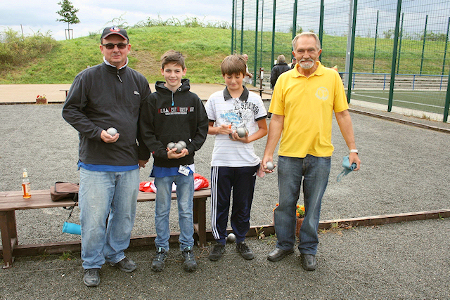 regelmäßig die Serie von Generationenturnieren. Unter der Federführung von Manfred Vey, fand am 26.08.2012 der vierte von sechs Spieltagen der Generationenturniere 2012 auf dem Boulodrome in Neunkirchen-Seelscheid statt. Der heimische Verein richtete zum wiederholten Male einen Spieltag aus. Insgesamt nahmen 8 Kinder und Jugendliche, von denen die meisten der Kooperation des BC mit der Gemeinschaftshauptschule in Neunkirchen-Seelscheid entstammen, mit ihren erwachsenen Mitspielern den Wettstreit um Punkte und Siege auf. In Neunkirchen-Seelscheid gab es außer den Wichtelgeschenken für alle, zusätzlich für die besten drei Jugendlichen/Kinder Siegerpokale, die in diesem Jahr von der Leiterin der o. g. Schule, Frau Anita Pütz, gestiftet wurden, die die Siegerehrung persönlich durchführte. Auch BPV- und Vereins-Präsident, Alfred Eckl, der am Vortag noch bei der Tête-á-tête-DM in St. Wendel aktiv war, ließ es sich nicht nehmen das Turnier mitzuspielen. Das Beispiel des BC Neunkirchen-Seelscheid zeigt, dass mit dem entsprechenden Engagement und guten Willen aller Verantwortlichen eine sehr gut funktionierende Zusammenarbeit mit einer Schule, angefangen vom Fahrdienst bis hin zu Trainingsstunden, möglich ist. Leider meinte es der Wettergott (wieder einmal) an diesem Tag nicht gut mit den Teilnehmern. Doch das Catering-Team des Vereins sorgte mit Pommes und Würstchen oder Nutella-Brötchen und Kuchen dafür, das trotzdem alle Spaß und gute Laune hatten.. Das Wichtigste: trotz einiger Regenschauer waren alle Kinder mit Kugel und Schweinchen und mit Eifer und bester Spiellaune, bei der Sache. Nach 5 spannenden Runden konnten dann die Tagessieger, Jessica Böhmer vor Nico Baumgart und Marvin Dünnwald, mit viel Beifall und zu ihrem verdienten Erfolg beglückwünscht werden. Insgesamt konnten viele hoffnungsvolle Talente für die Zukunft unseres Sports beim konzentrierten Spiel beobachtet werden. Schön ist, dass es den meisten gut gefallen zu haben scheint, denn sonst hätten sie wohl nicht den Wunsch geäußert, auch an den zwei restlichen Spieltagen teilzunehmen. Der Jugendausschuss des BPV NRW bedankt sich beim gesamten Team des Boule Club Neunkirchen-Seelscheid für einen tollen Bouletag und freut sich über die Zusage der Verantwortlichen auch in 2013 wieder als Austragungsort für einen der Spieltage der Generationenturniere zur Verfügung zu stehen. Martin Wleklik Jugendausschuss BPV NRW (mit Unterstützung von Manfred Vey) |